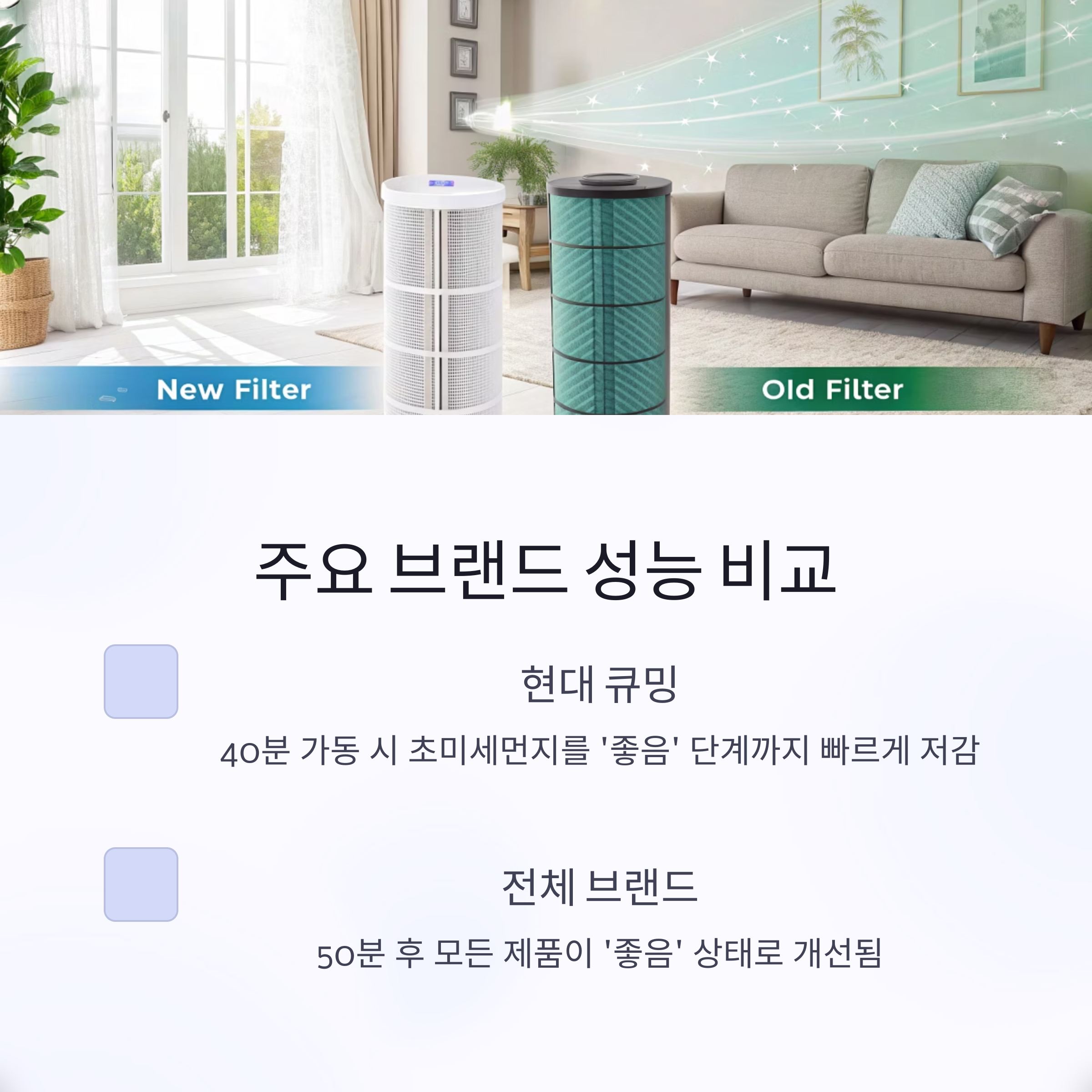| 브랜드명 | 초미세먼지 제거속도 | 필터 등급 | 추가 특징 |
