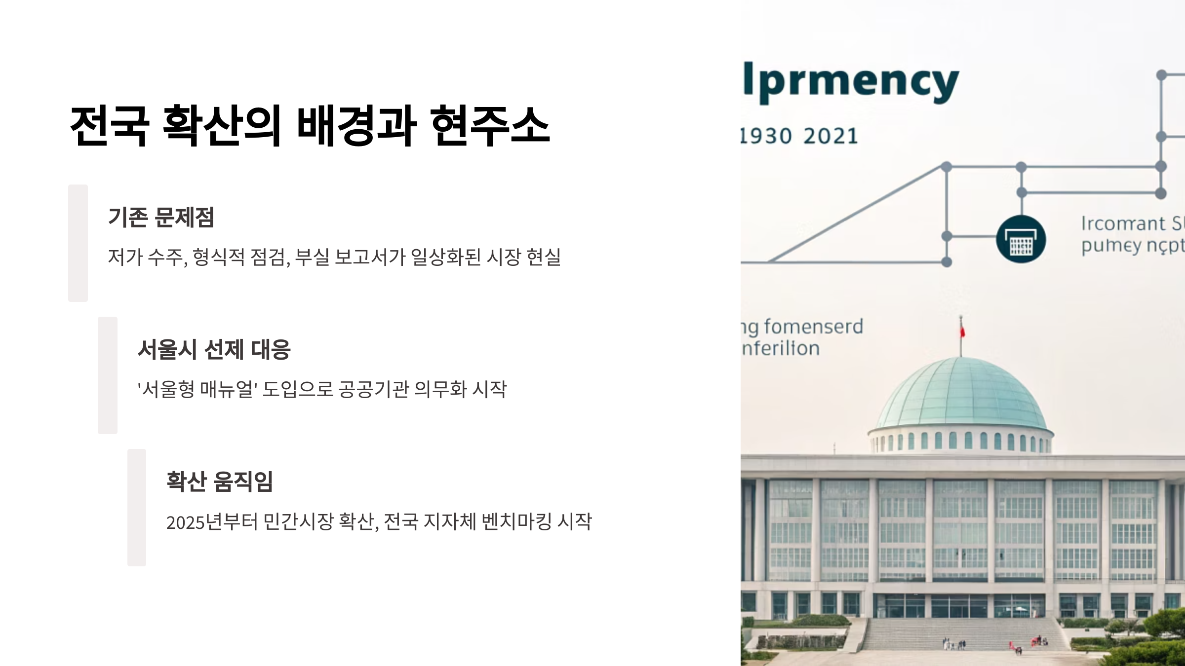 기존 매뉴얼은 ‘법적 요건’에만 충실했다면, 서울시 모델은 실질적 현장 적용성과 투명성을 극대화했습니다.