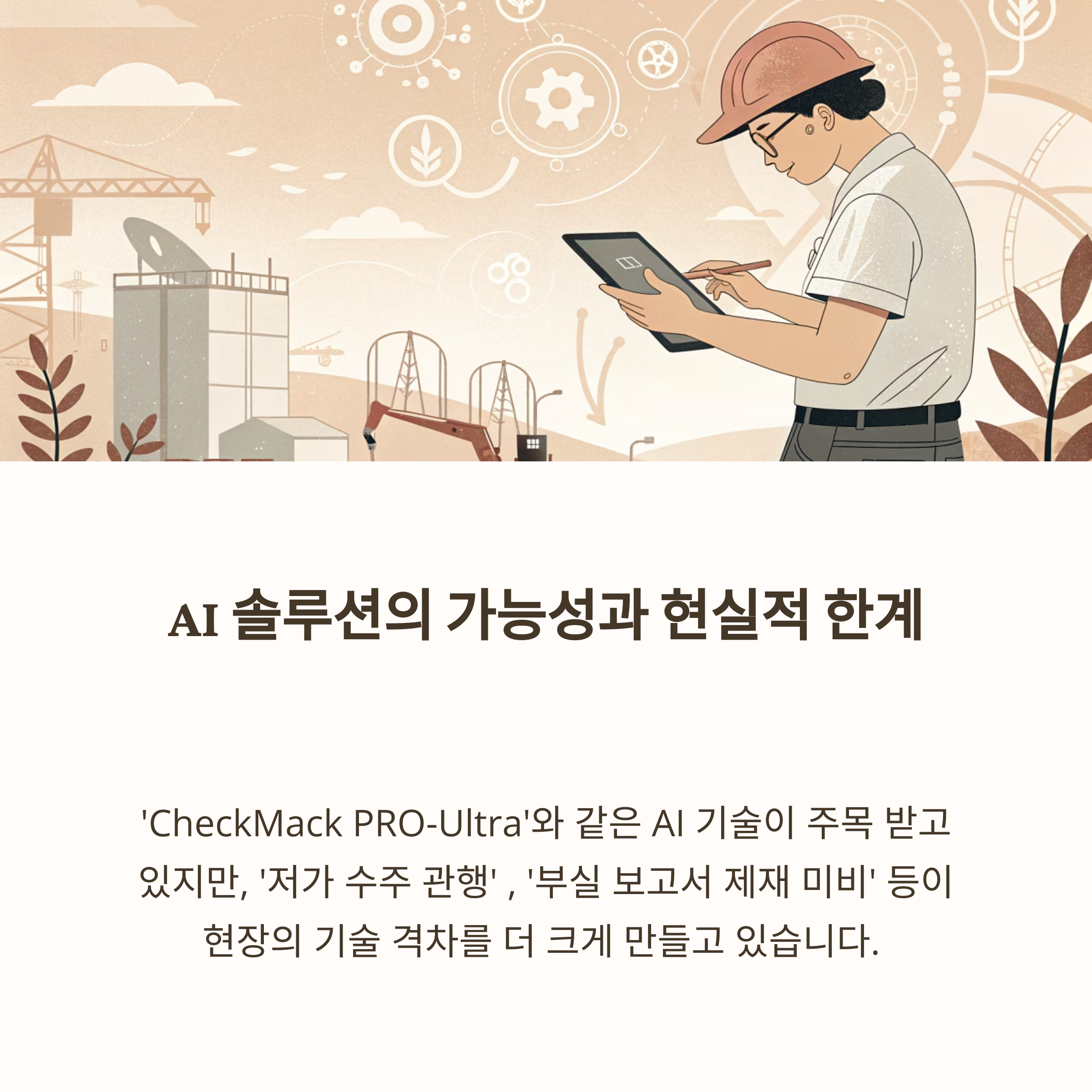 현실적으로는 현장의 기술 격차로 인해 최신 기술의 도입과 활용이 여전히 어렵습니다.