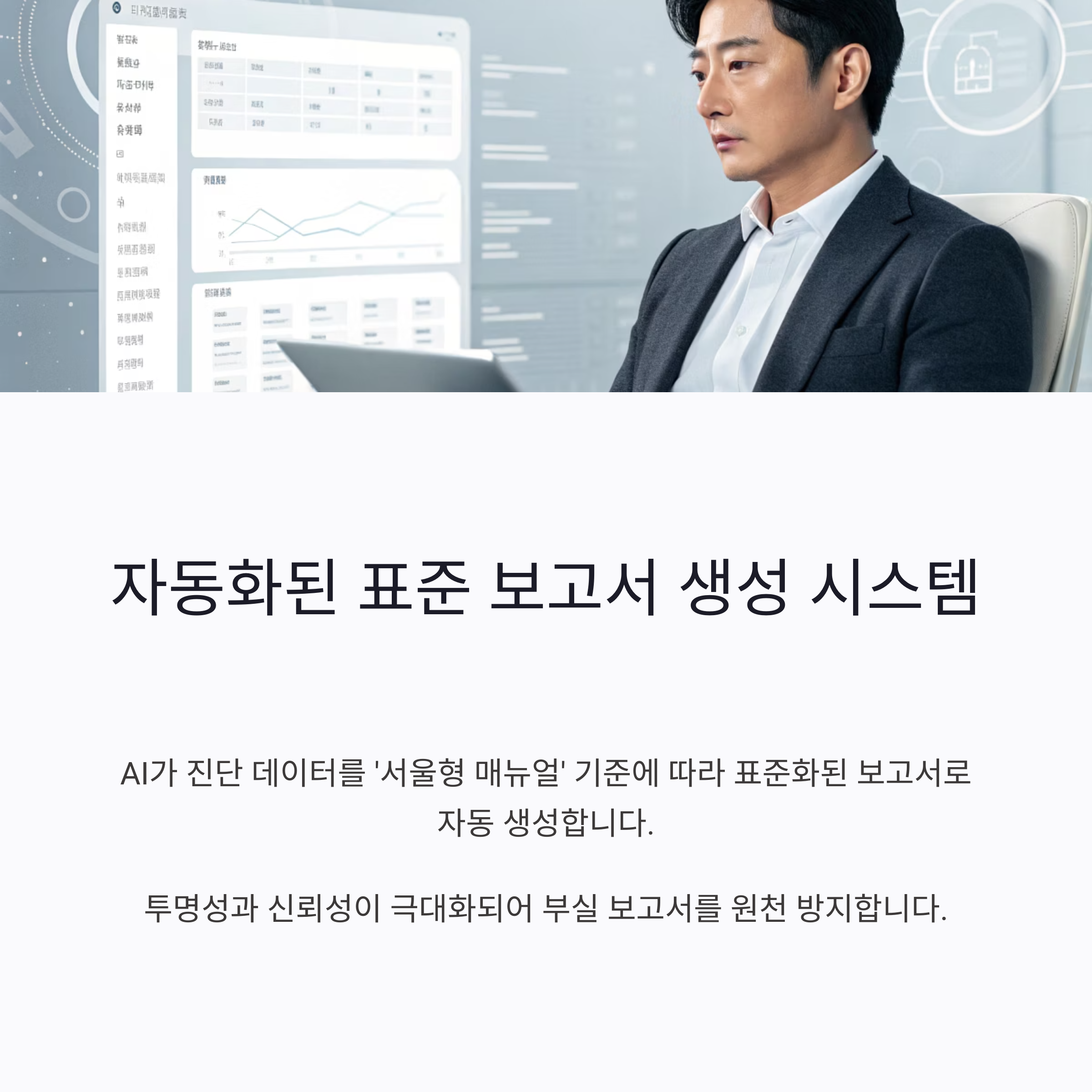 AI가 진단한 데이터를 '서울형 매뉴얼' 기준에 따라 표준화된 형태로 자동으로 보고서를 생성하여
