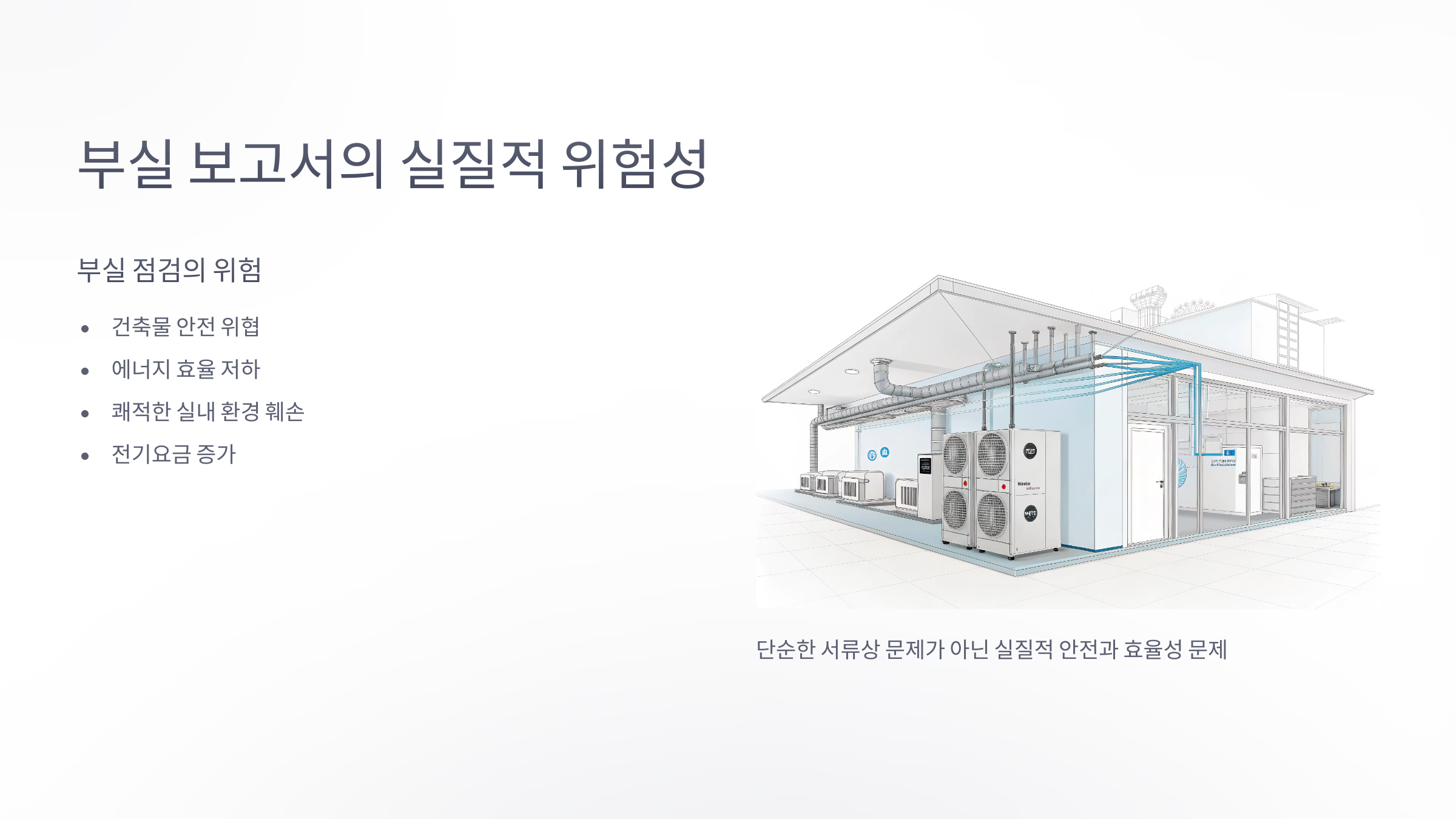 부실한 기계설비 성능점검 보고서는 단순히 서류상의 문제가 아닙니다.