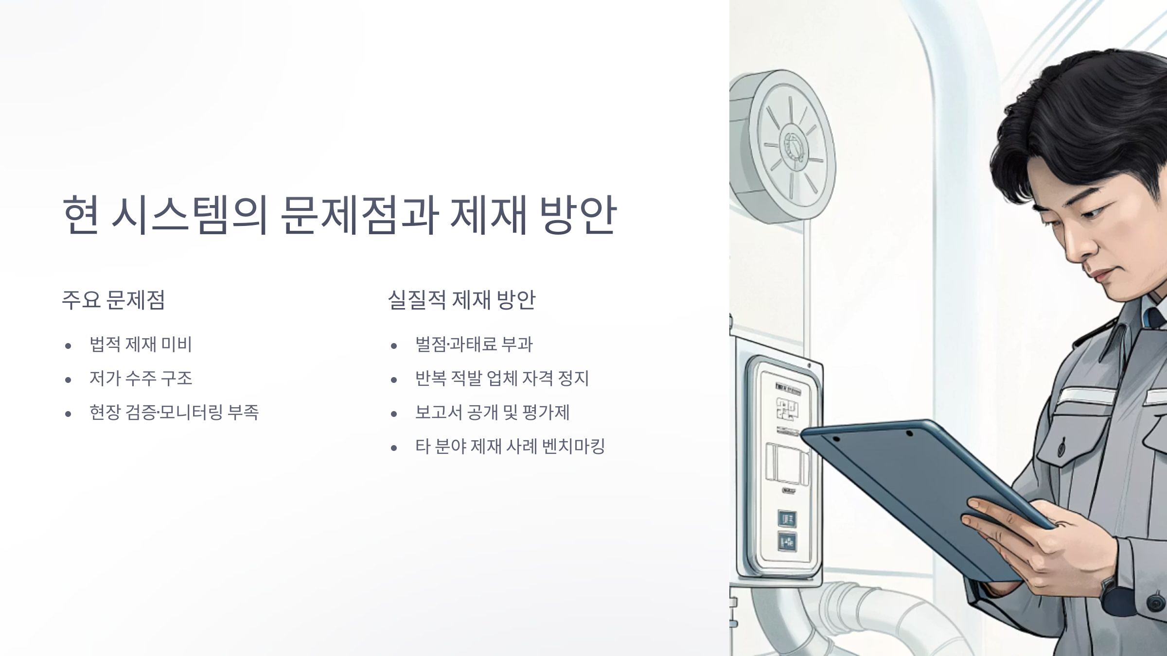특히 저가 수주와 형식적인 부실 보고서가 만연해도 실질적인 제재가 어렵다는 점,
