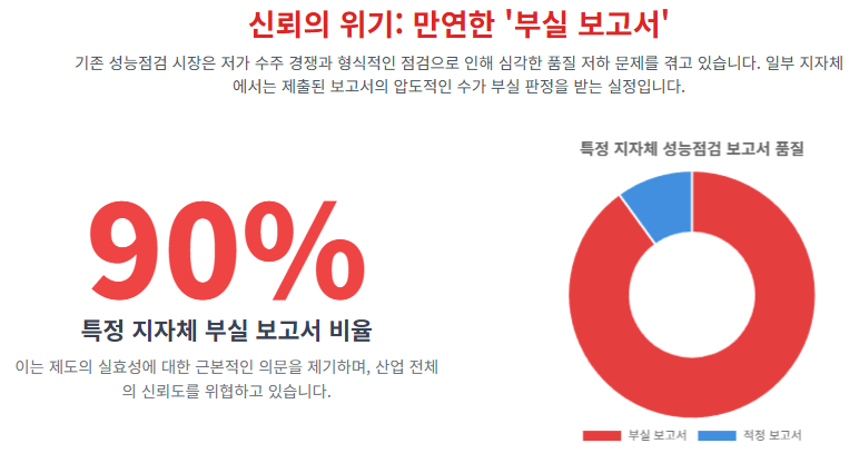 “한 기초자치단체에서는 제출된 성능점검 보고서의 약 90%가 부실 판정을 받아 보완 요구를 받는 사태까지 발생했습니다. 이는 성능점검이 형식적인 절차로 전락했음을 보여주는 단적인 예입니다.”
