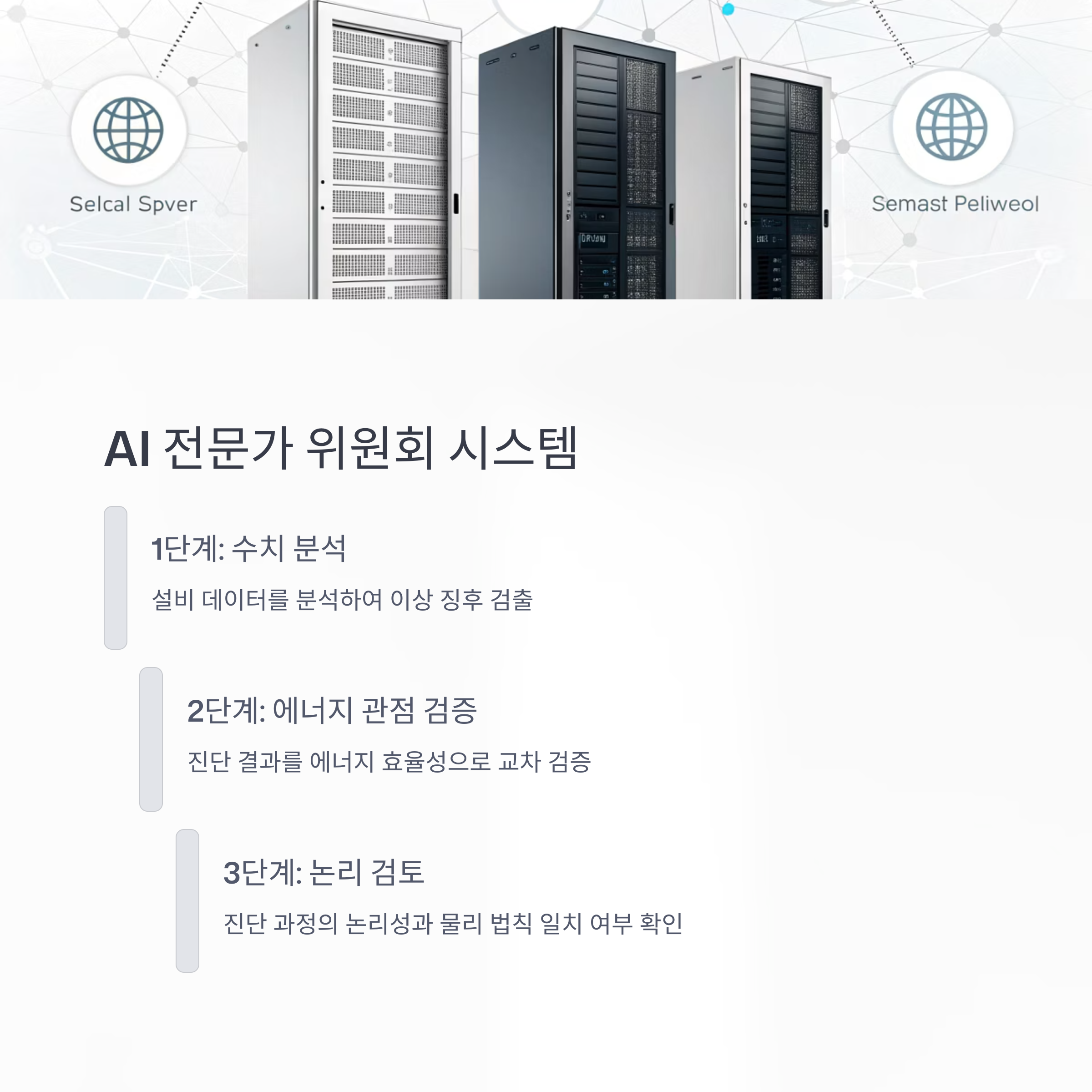 PRO-Ultra는 단일 AI가 아닙니다. 마치 기계공학, 에너지공학, 제어공학 전문가가 모여 토론하듯 3단계의 협업 진단을 수행합니다.