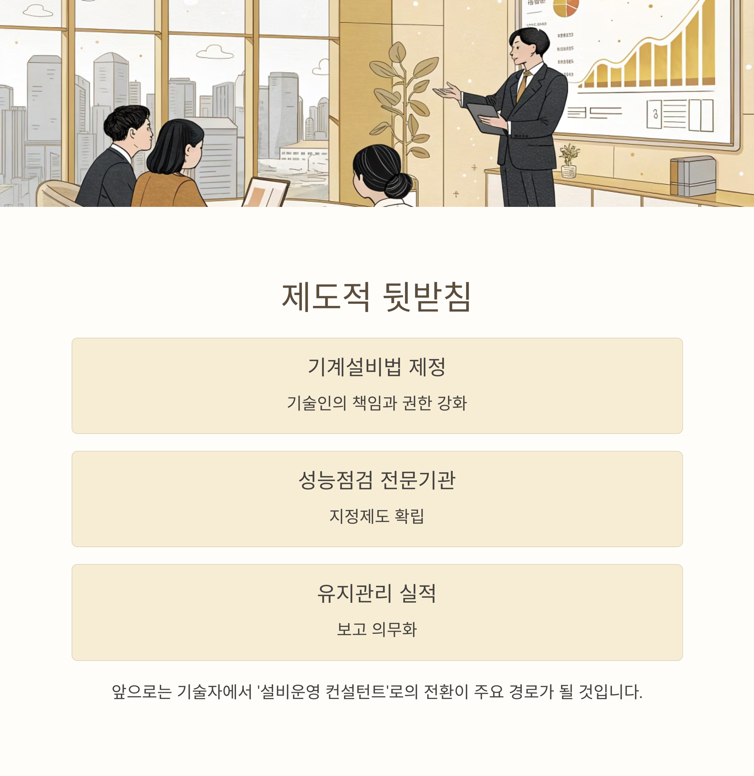 기계설비 기술인의 역할을 제도적으로도 높이는 기반이 되고 있습니다.
