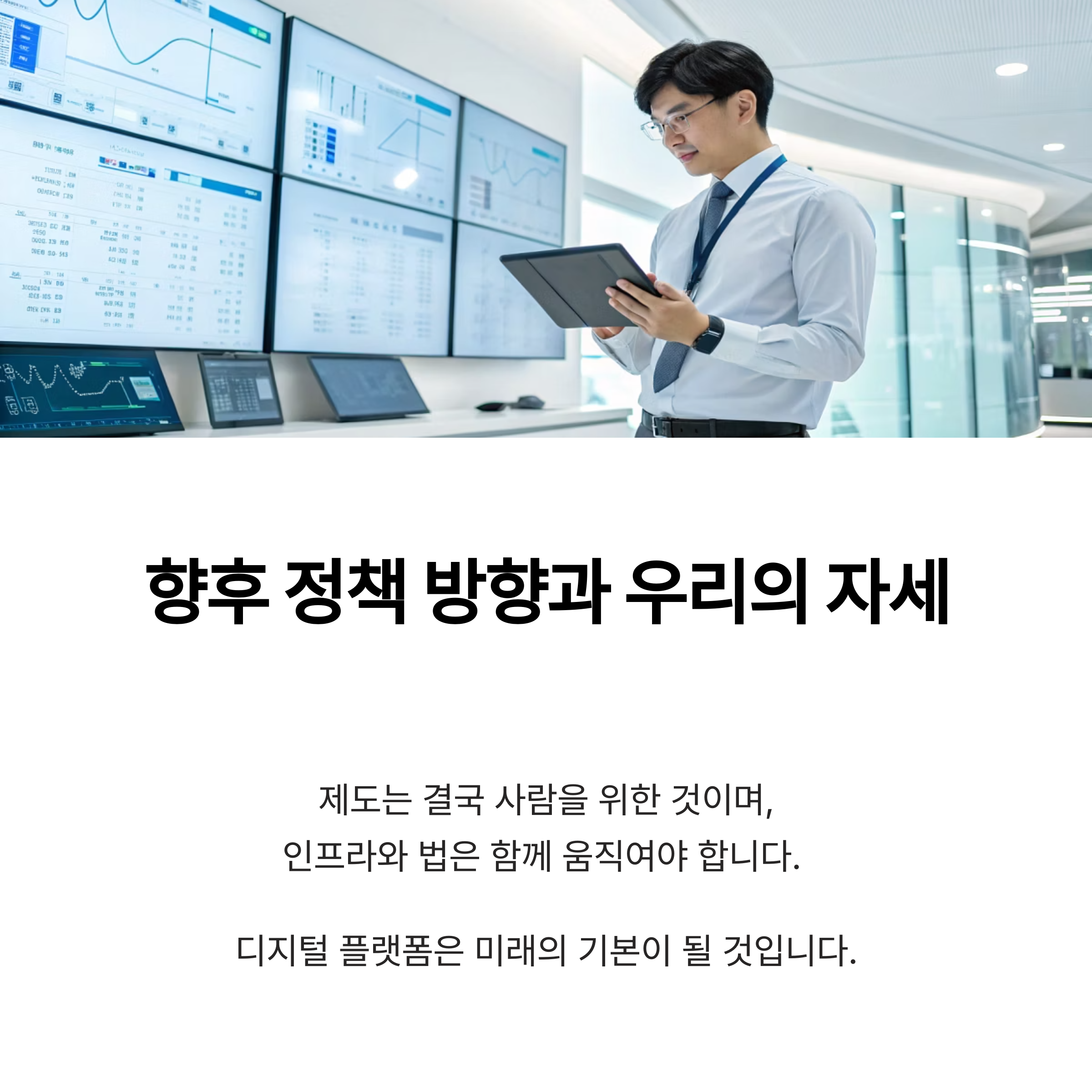 • 인프라와 법은 함께 움직여야 – 제도를 만들기보다, 실행 가능한 여건을 먼저 갖춰야 한다는 교훈도 남습니다.