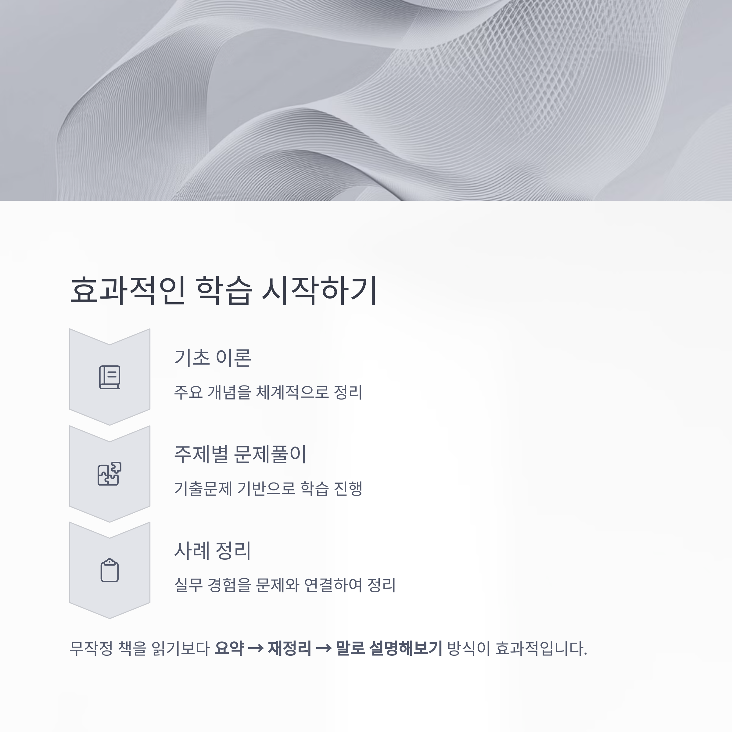 가장 추천되는 방법은 기출문제 기반 전략 + 체계적인 정리입니다.