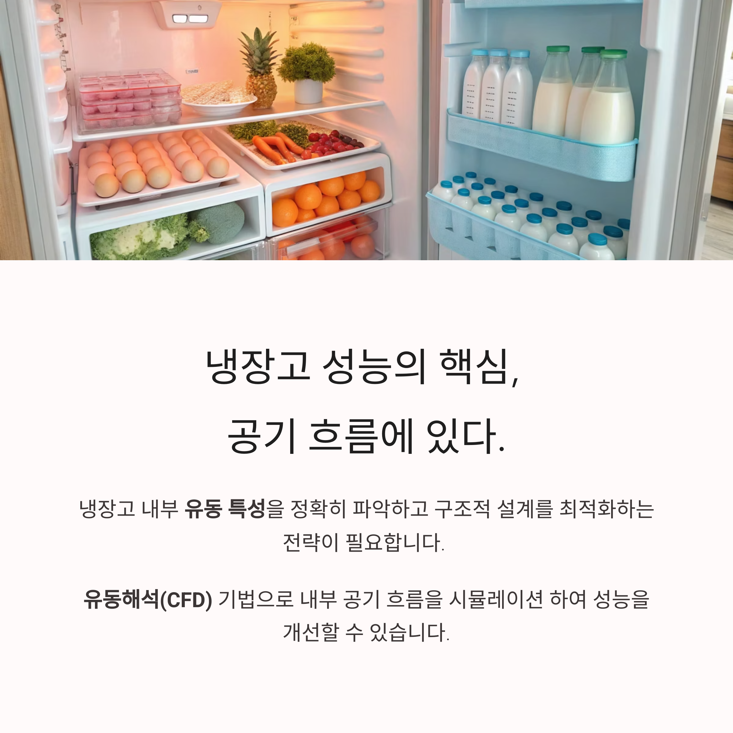 냉장고는 단순히 차가운 공기를 내보내는 기계가 아닙니다. 내부 구조, 팬의 위치, 벽면 형상, 도어의 사용 여부에 따라 온도 분포와 에너지 소비는 매우 크게 달라질 수 있습니다.