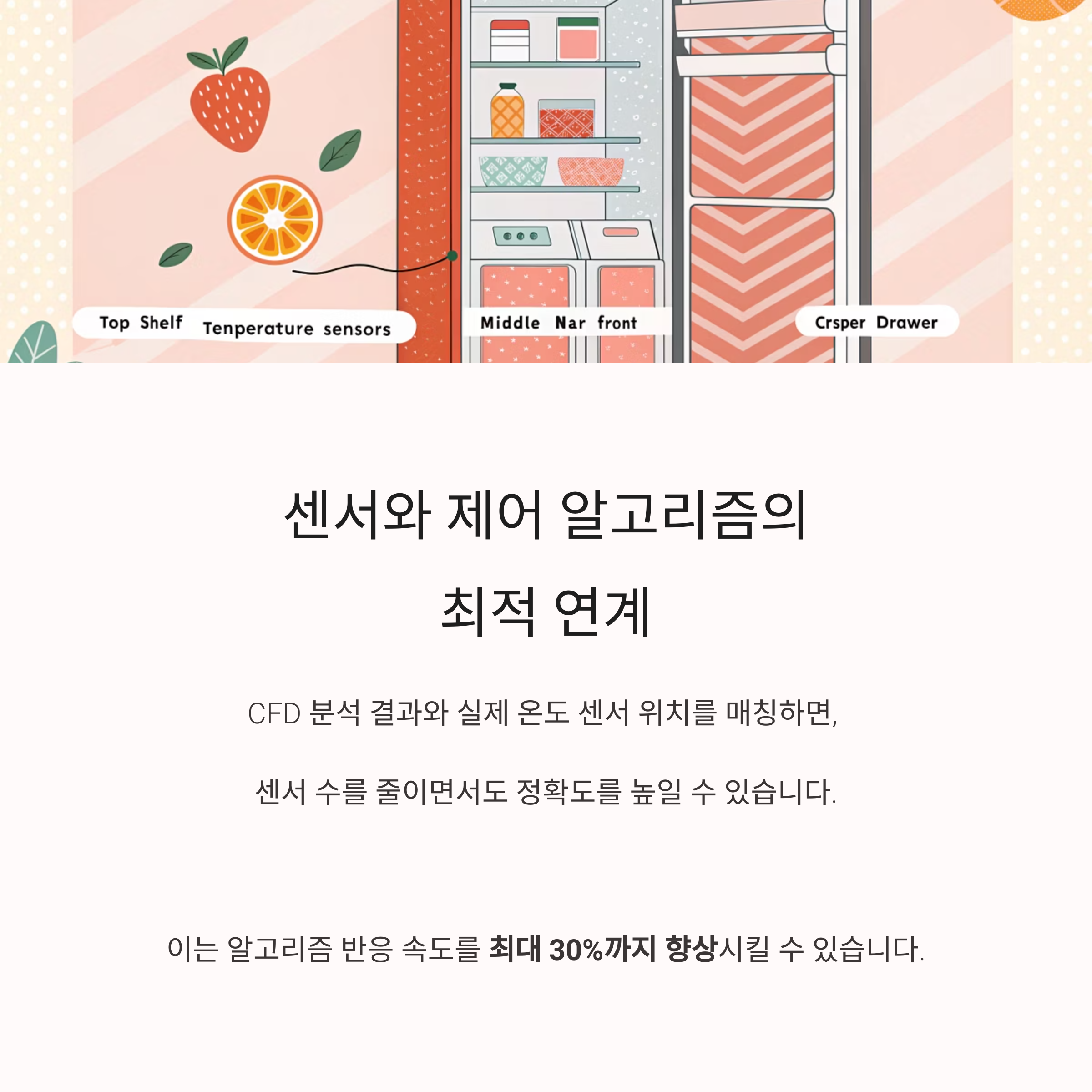 센서와의 연계는 냉장고 유동 성능을 정밀하게 제어하기 위한 핵심 요소입니다. CFD 분석 결과를 실제 온도 센서의 위치와 연결하면, 센서 수를 줄이면서도 정확도를 높일 수 있습니다.