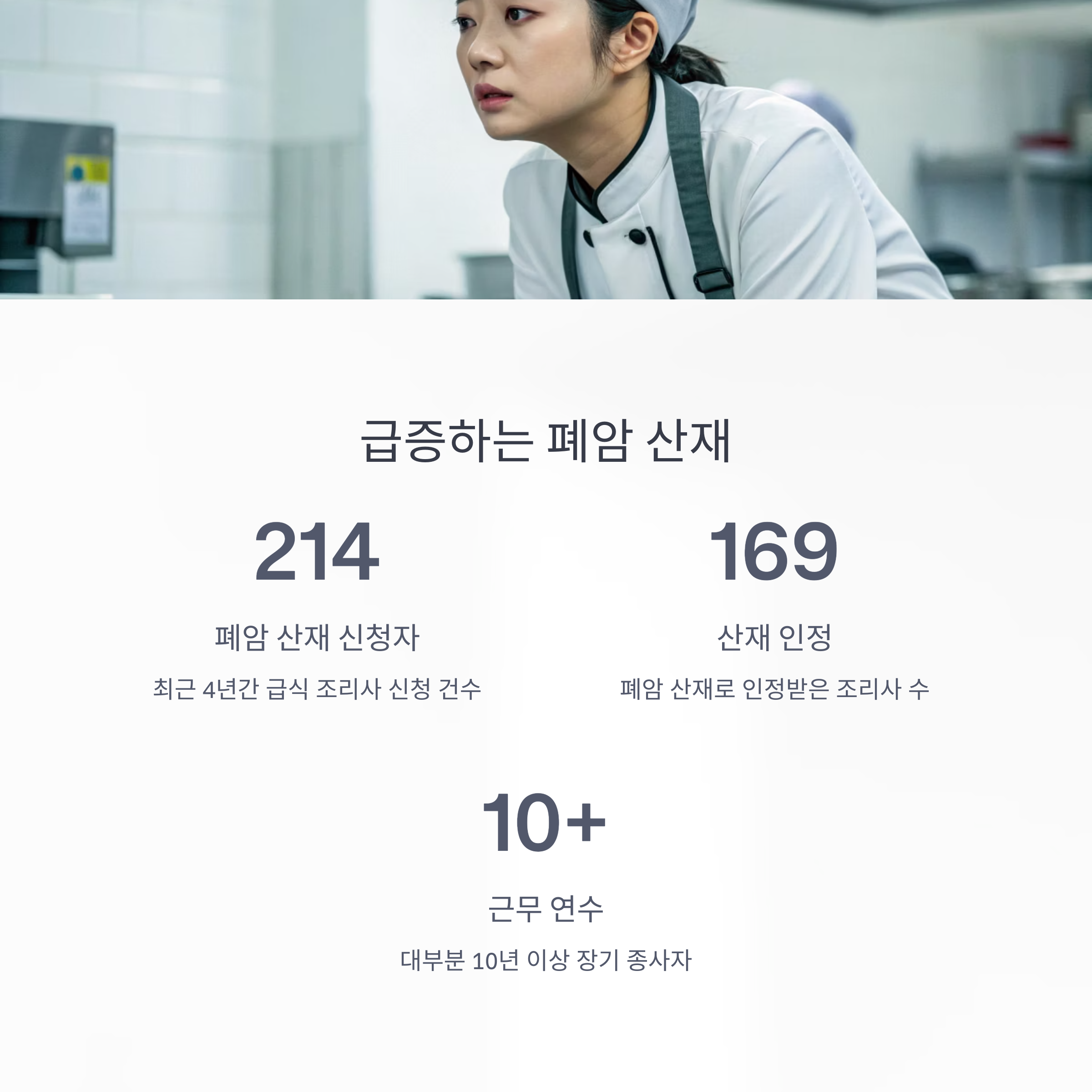 최근 4년간 급식 조리사 214명이 폐암으로 산재 신청을 했으며, 이 중 169명이 산재로 인정받았습니다.