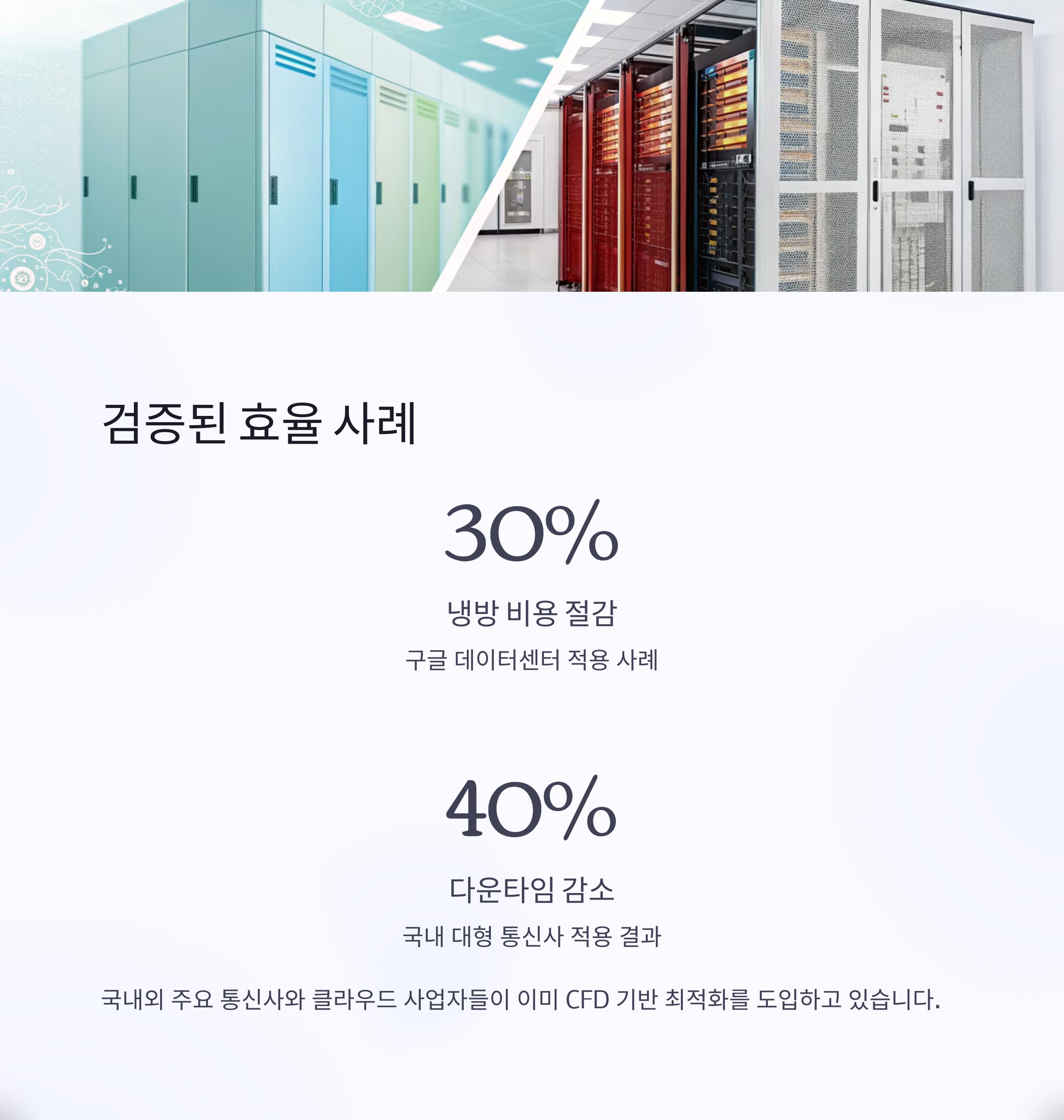 국내에서는 주요 통신사와 클라우드 사업자들도 CFD 기반 최적화를 도입하고 있습니다.