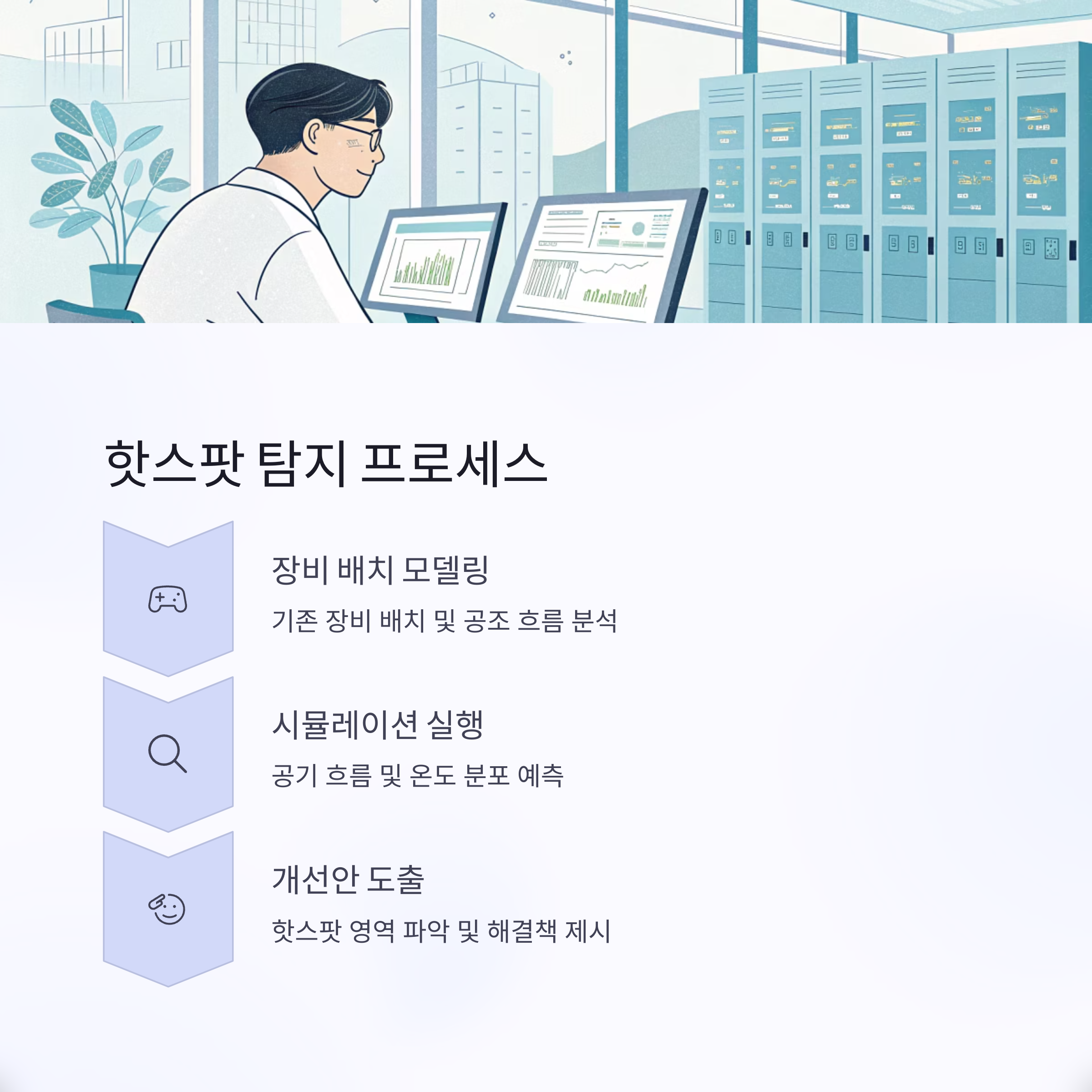 이 과정을 통해 공조기 위치, 풍량, 냉각 패널 위치 등을 조정하여 냉방 효율을 대폭 개선할 수 있습니다.