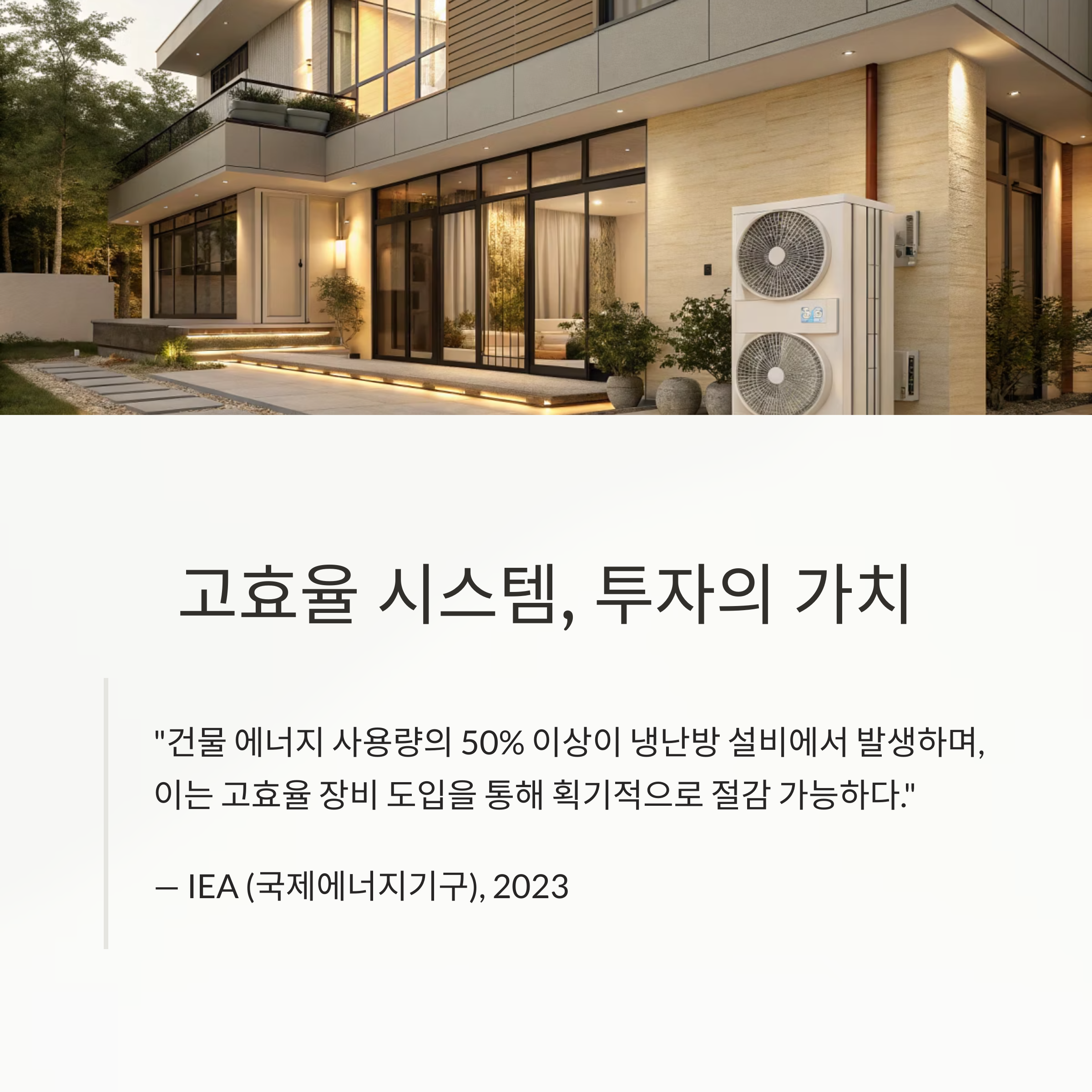 “건물 에너지 사용량의 50% 이상이 냉난방 설비에서 발생하며, 이는 고효율 장비 도입을 통해 획기적으로 절감 가능하다.”