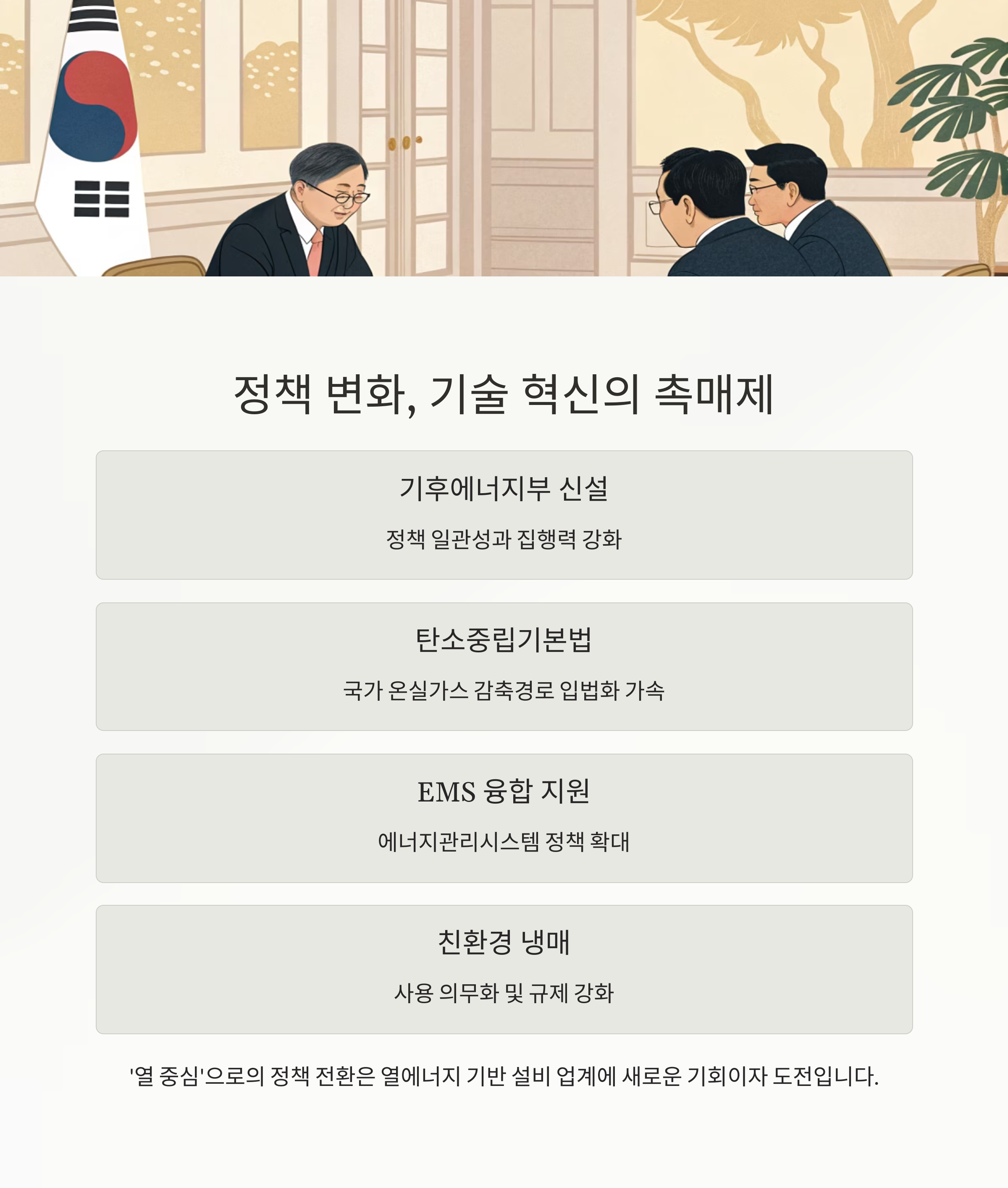 최근 정부의 기후에너지부 신설과 탄소중립 목표 강화는 냉난방공조(HVAC) 업계에 전례 없는 구조 전환을 요구하고 있습니다.