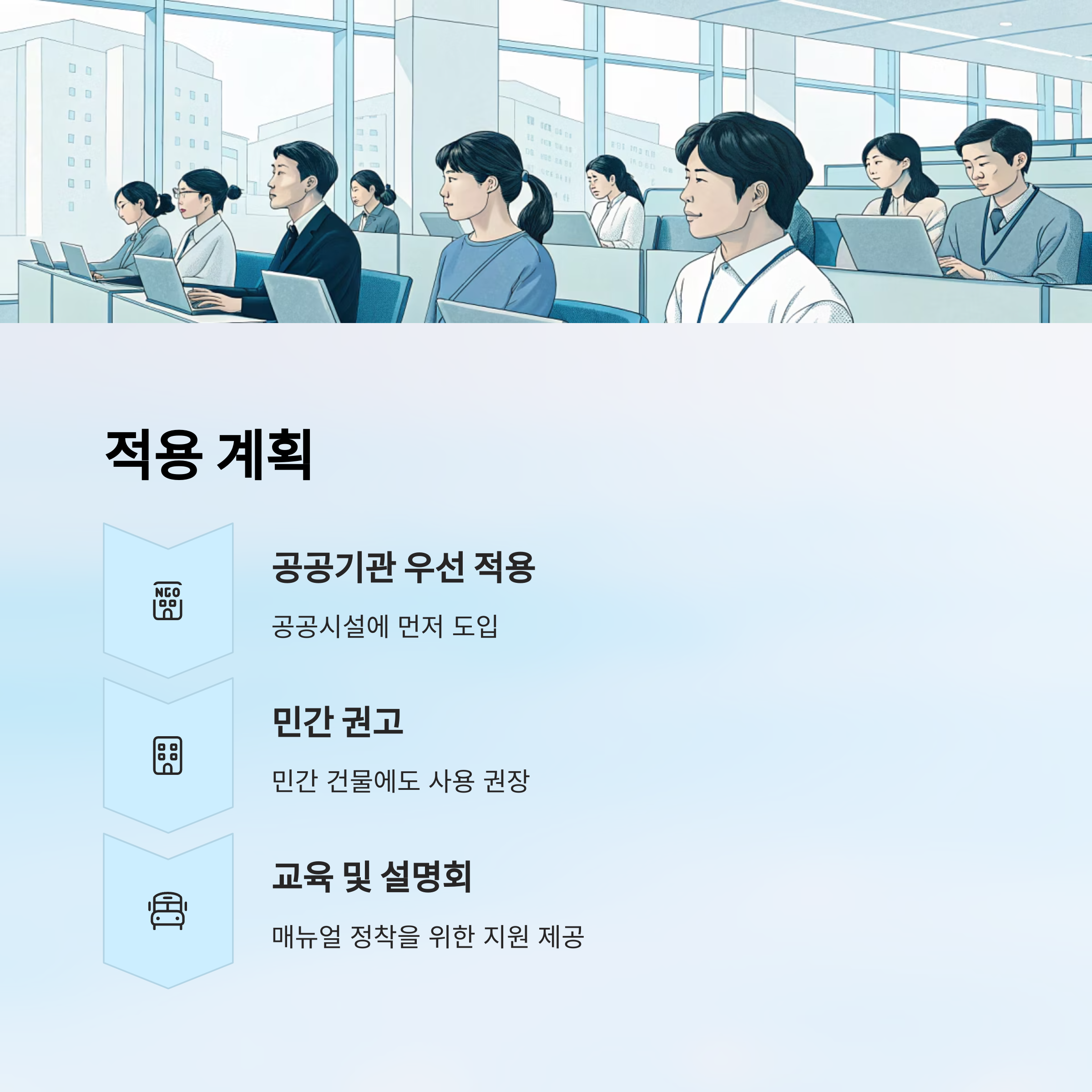 공공기관 우선 적용과 민간 건축물 확산은 표준화 문화 정착을 위한 주요 단계로 평가됩니다.