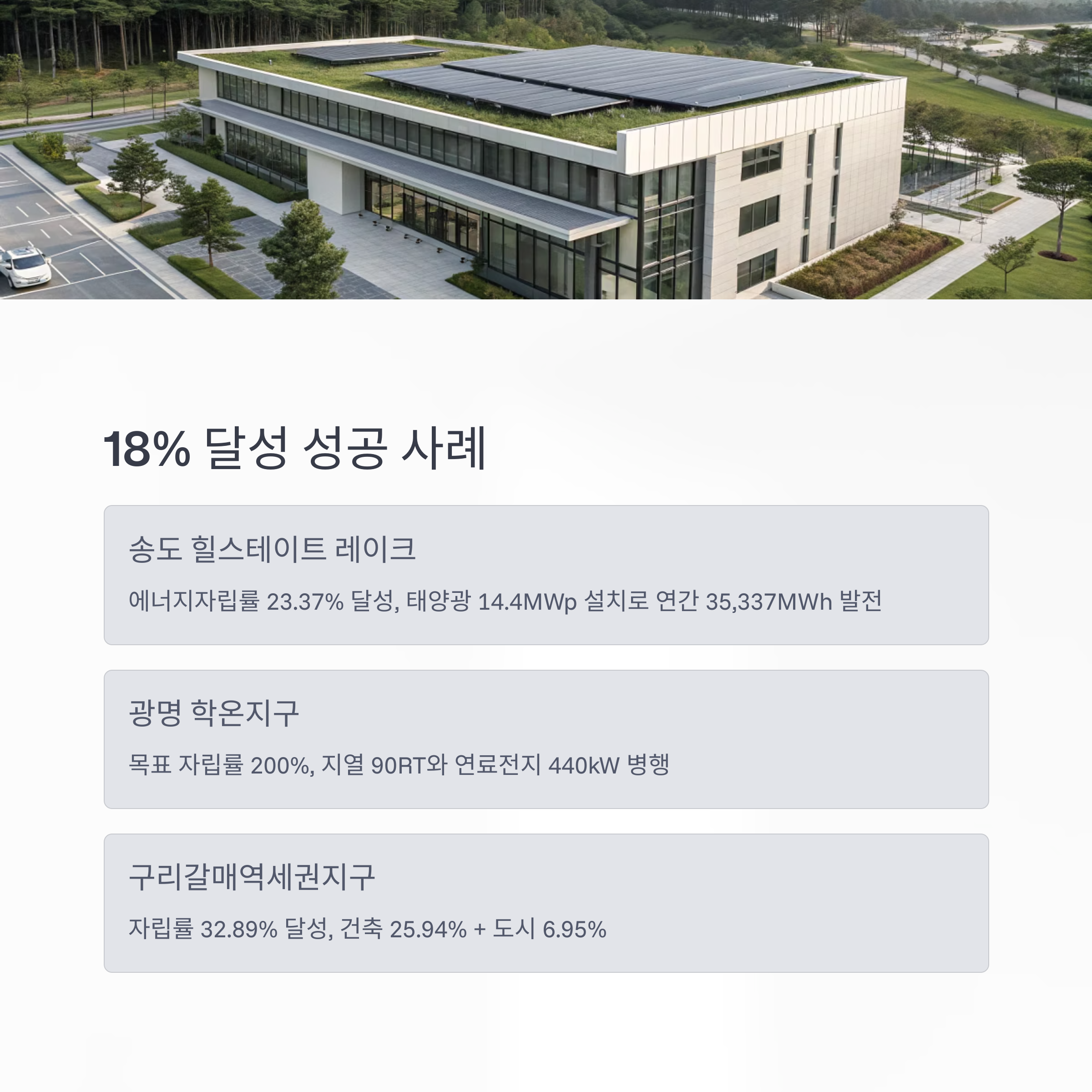 대표적인 성공 사례 중 하나인 힐스테이트 레이크 송도는 에너지자립률 23.37%을 기록하며 현실적인 가능성을 입증했습니다.