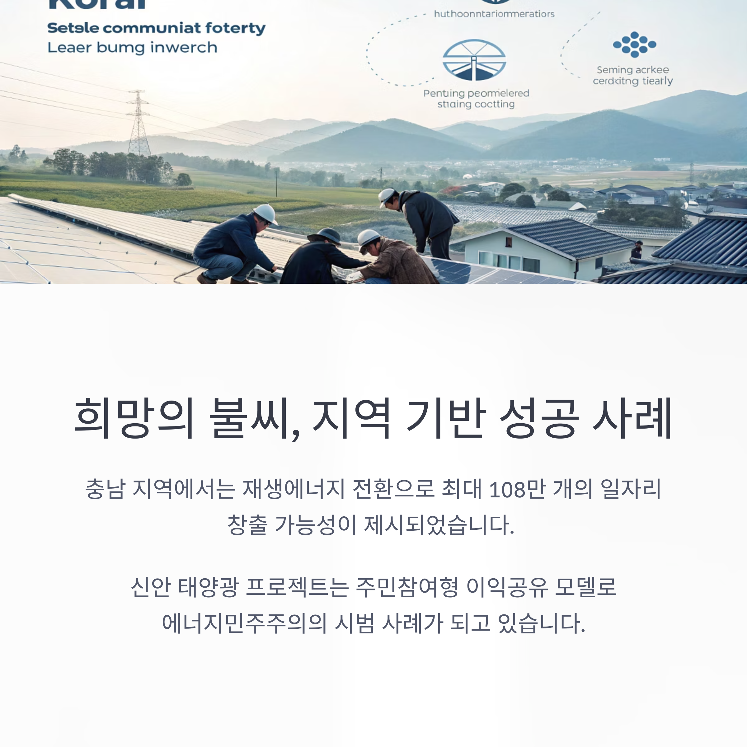 지역기반 전환 프로젝트를 통한 시민참여형 모델이 확산되고 있습니다.