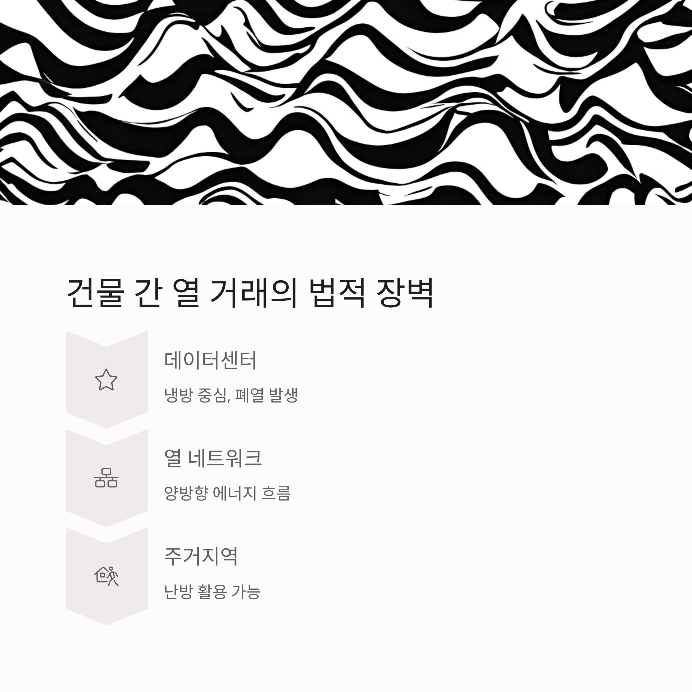 서울에너지공사의 서초 실증사업은 분산형 히트펌프, 미활용 열원 통합, 열저장 기술 등 5세대 시스템의 가능성을 입증하고 있지만, 이러한 모델이 상업화되기 위해서는 제도 개정이 반드시 필요합니다.