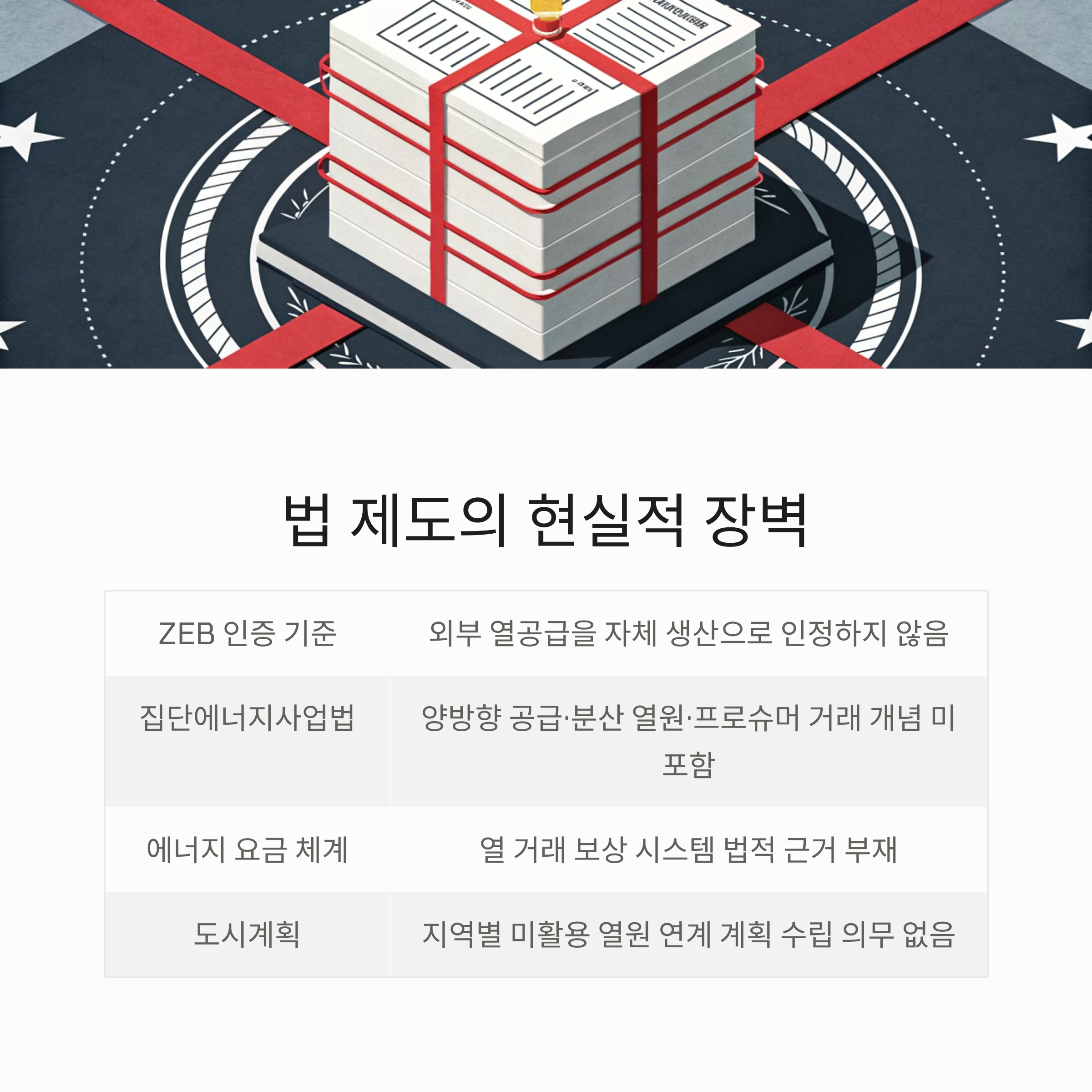 | 프로슈머 인정 부재 | 열 공급자-수요자 간 거래 구조 반영 법률 신설 필요 |