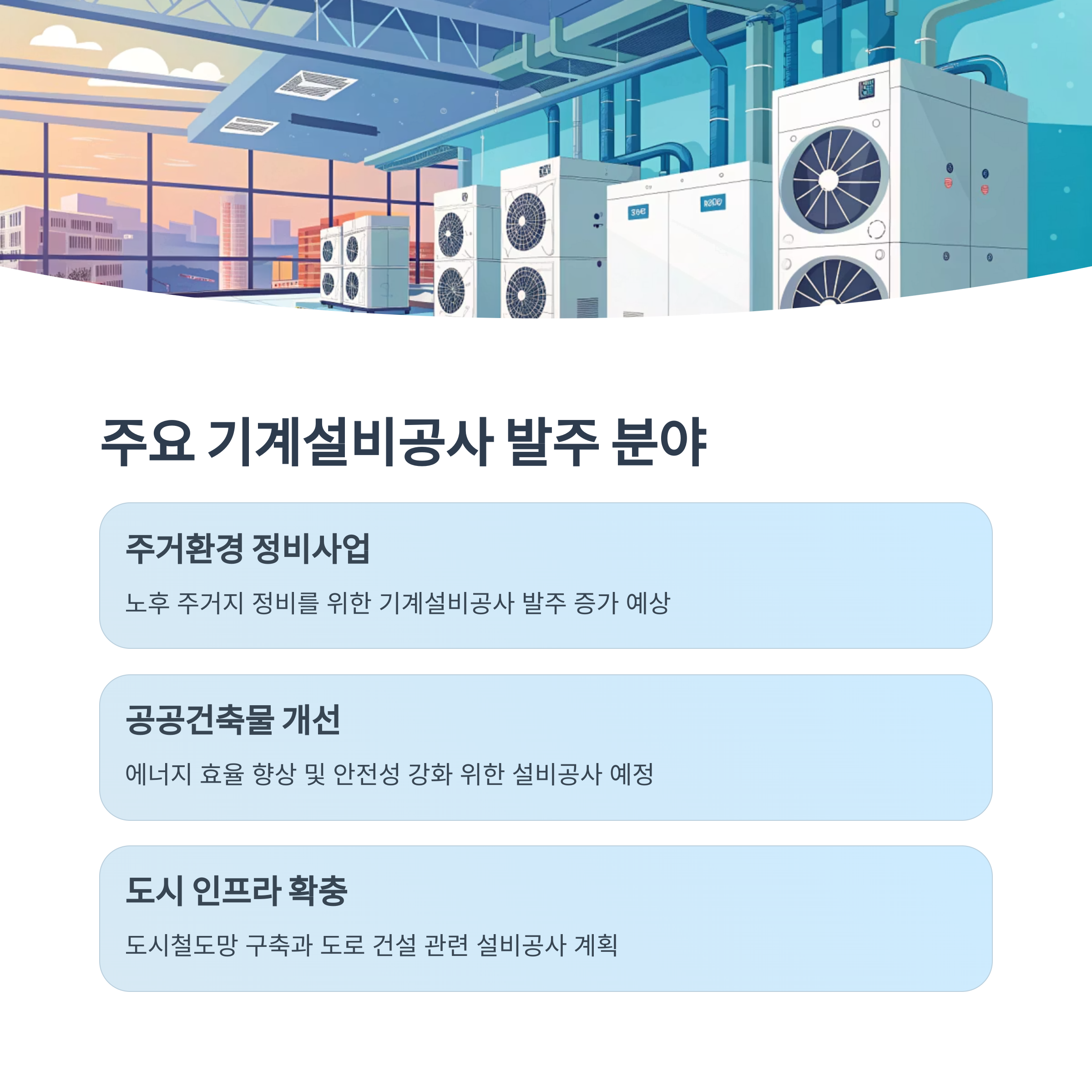 • 주거환경 정비사업: 노후 주거지 정비를 위한 기계설비공사 발주가 증가할 것으로 예상됩니다.