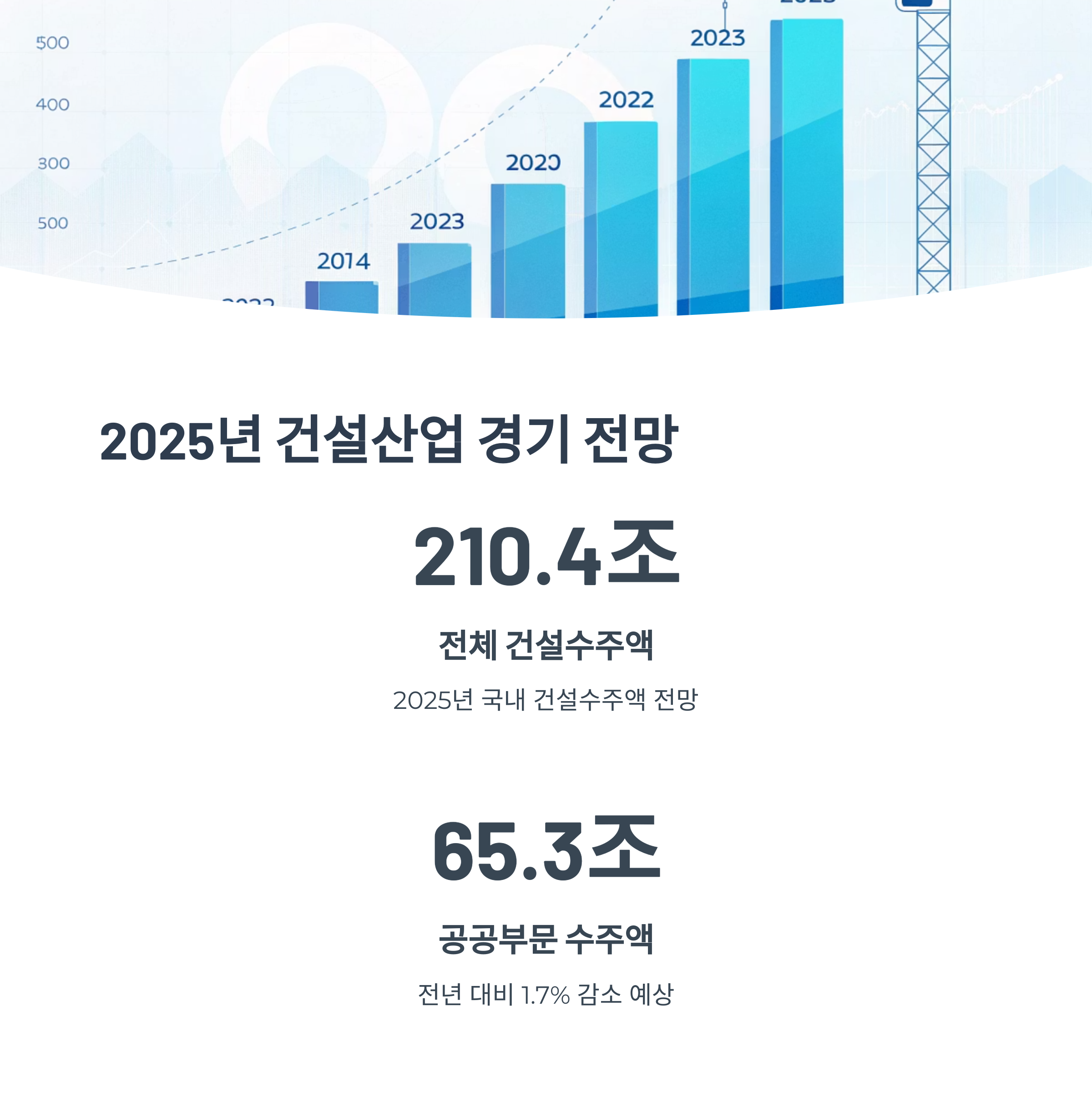 한국건설산업연구원은 2025년 국내 전체 건설수주액이 210조 4천억 원에 이를 것으로 전망하고 있습니다.