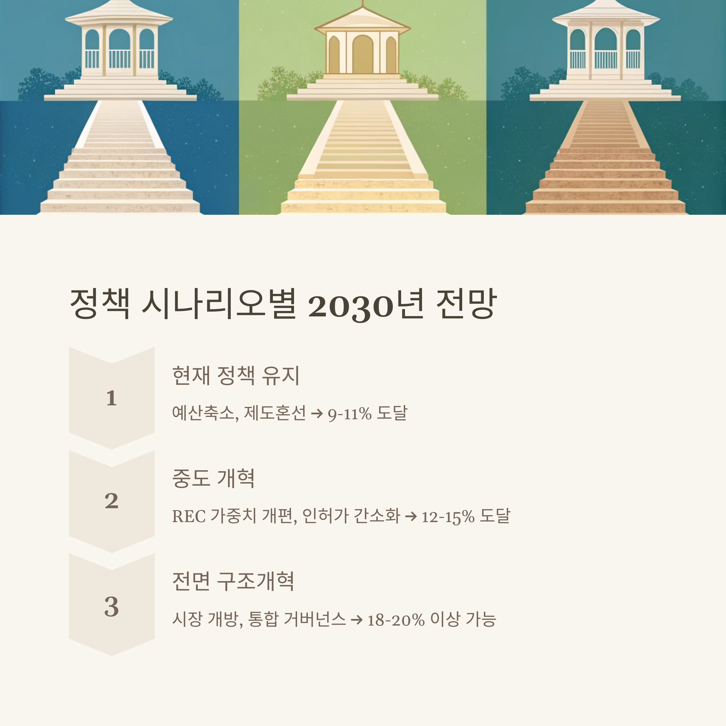 | 중도 개혁 | REC 가중치 개편, 인허가 간소화 | 12~15% |