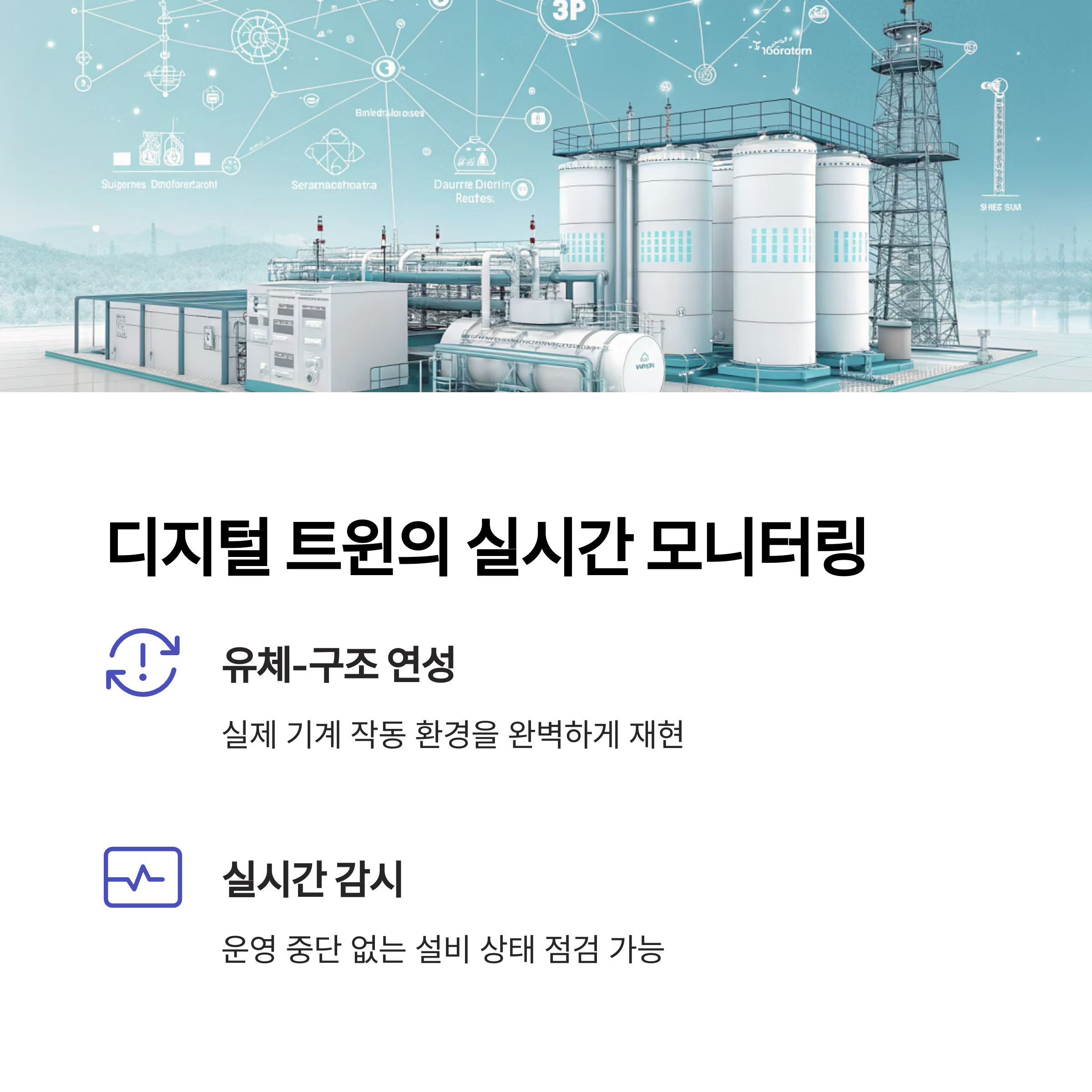 센서 데이터와 연결된 디지털 트윈은 실시간 모니터링과 고장 예측을 수행하며 운영 중단 없이 설비 상태를 점검할 수 있는 새로운 패러다임을 제공한다.