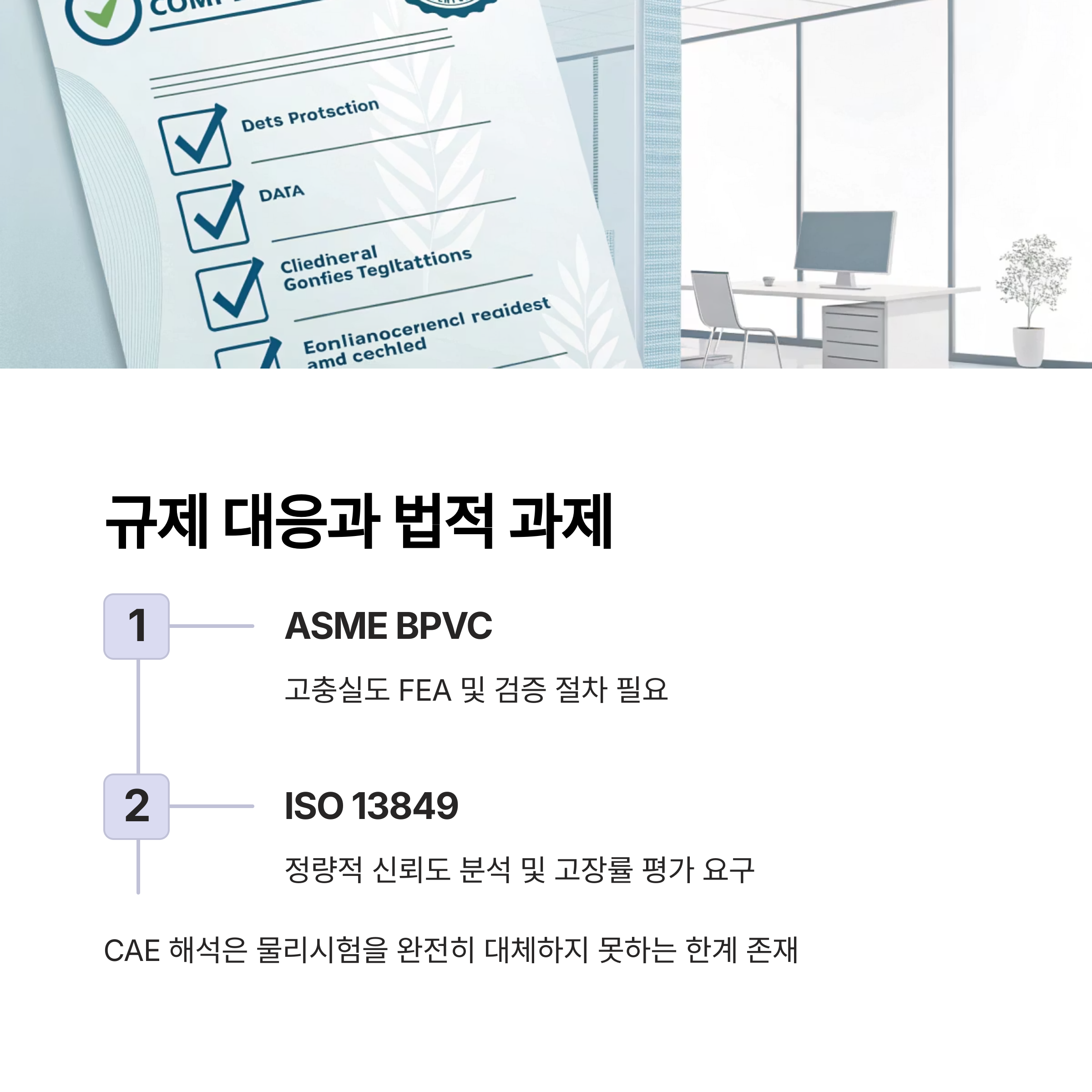 ASME BPVC와 ISO 13849 등 국제 기준에서는 FEA의 활용을 허용하고 있지만, 확률적 예측과 결정론적 규제 사이의 간극은 여전히 존재한다.