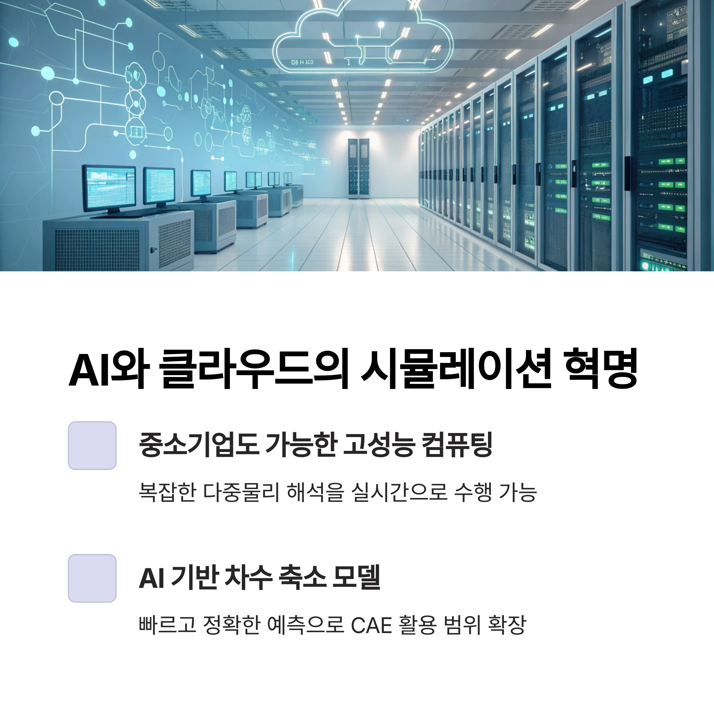 AI와 클라우드 HPC(고성능 컴퓨팅)는 CFD와 FEA의 계산 비용 장벽을 허물고 있다.