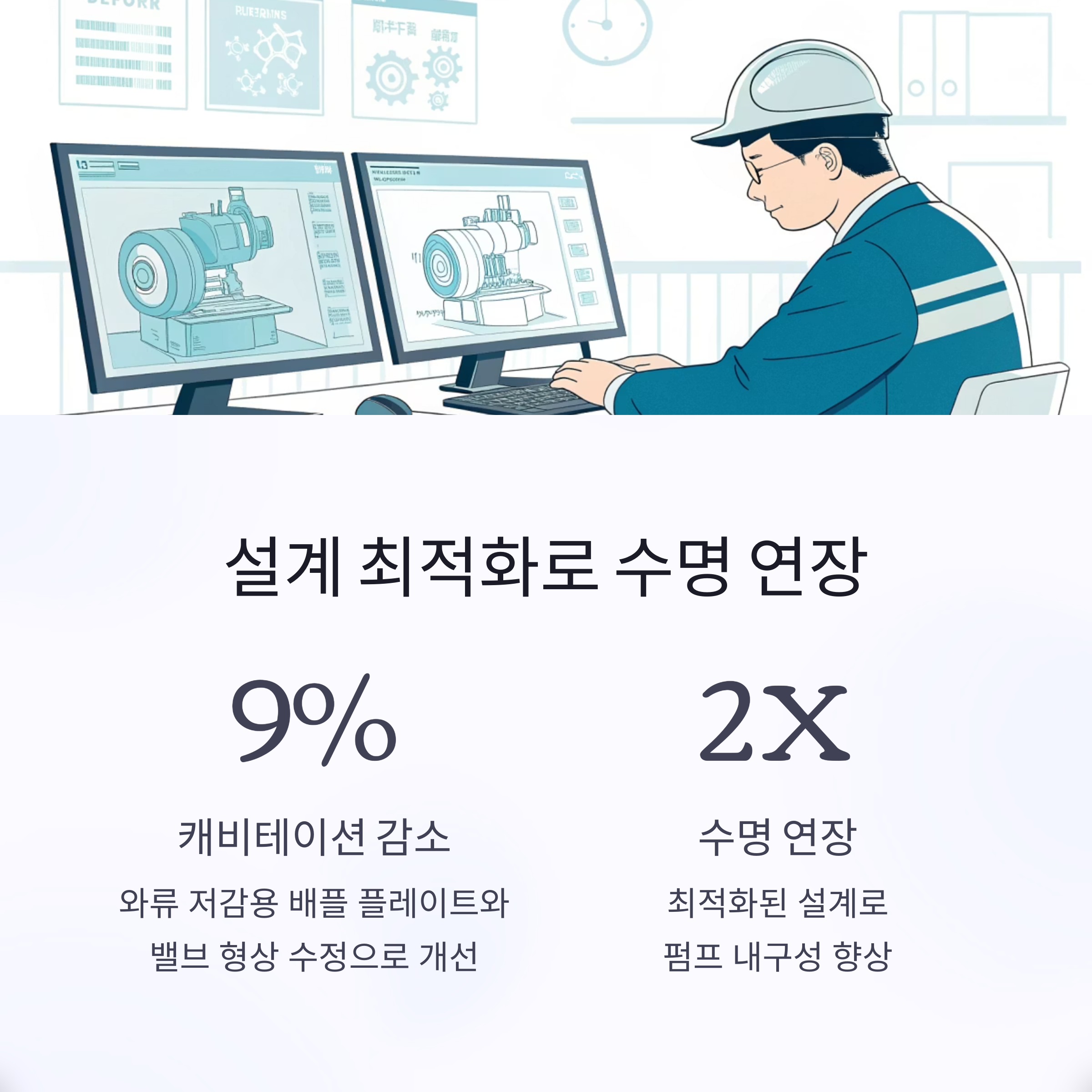 설계 최적화 캐비테이션 저감 설계 반영, 수명 및 성능 개선