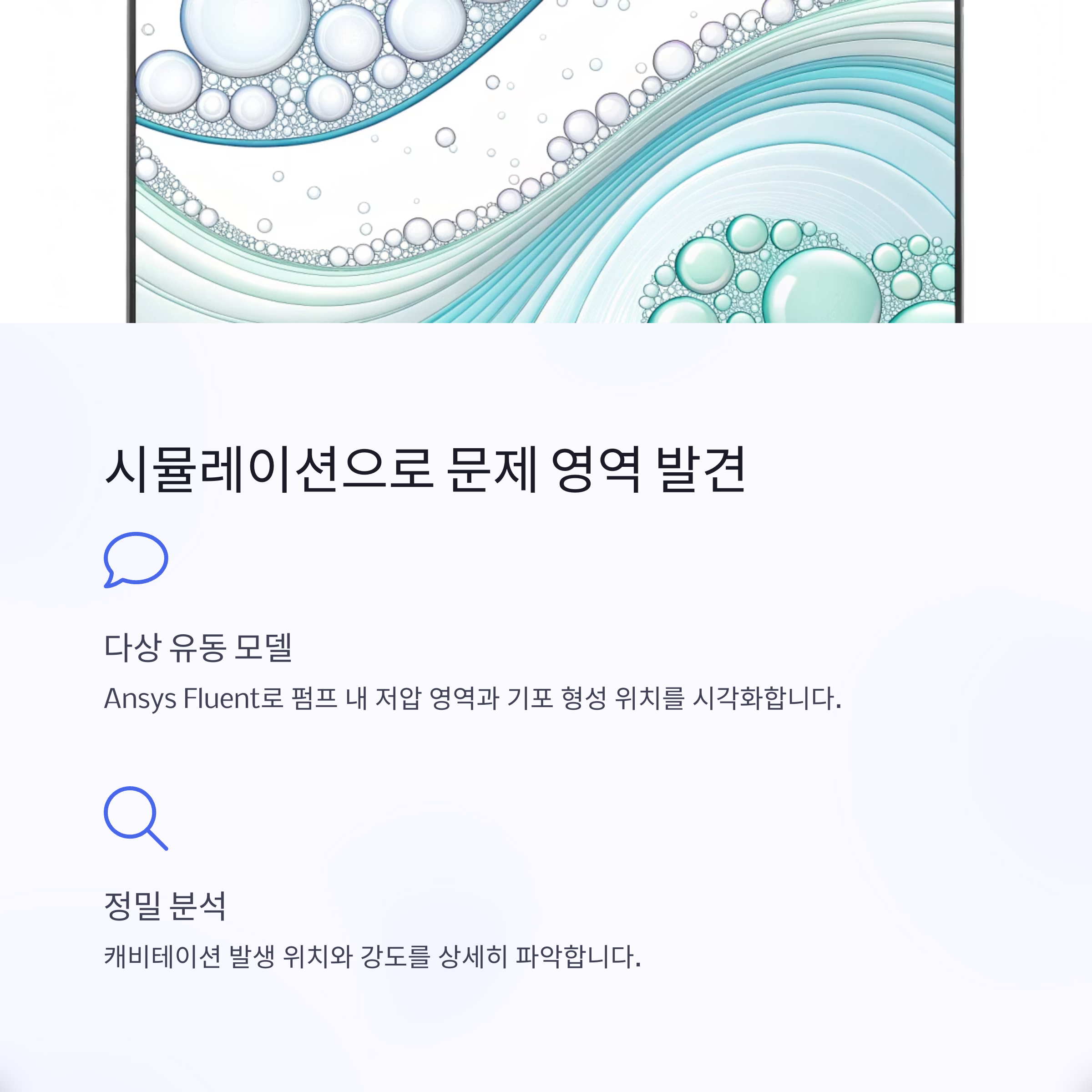 이 과정은 캐비테이션 기포 붕괴로 인한 침식 및 피로 손상을 정확히 예측하고 고장 위험 부위를 식별하는 데 활용됩니다.