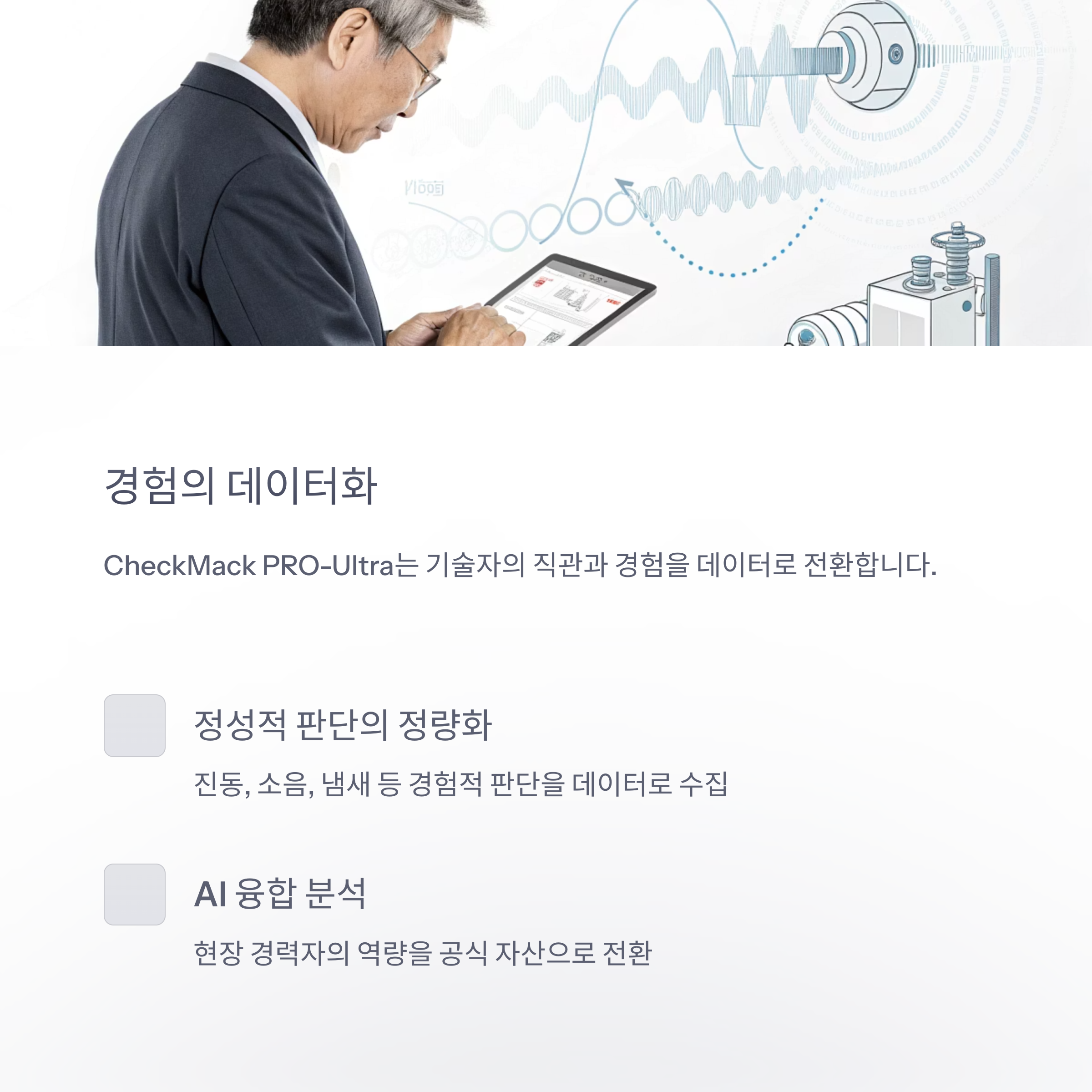 수십 년의 실무 경험에서 나오는 정성적 판단(진동, 소음, 냄새 등)을 데이터로 수집해 진단의 일부로 반영하고,