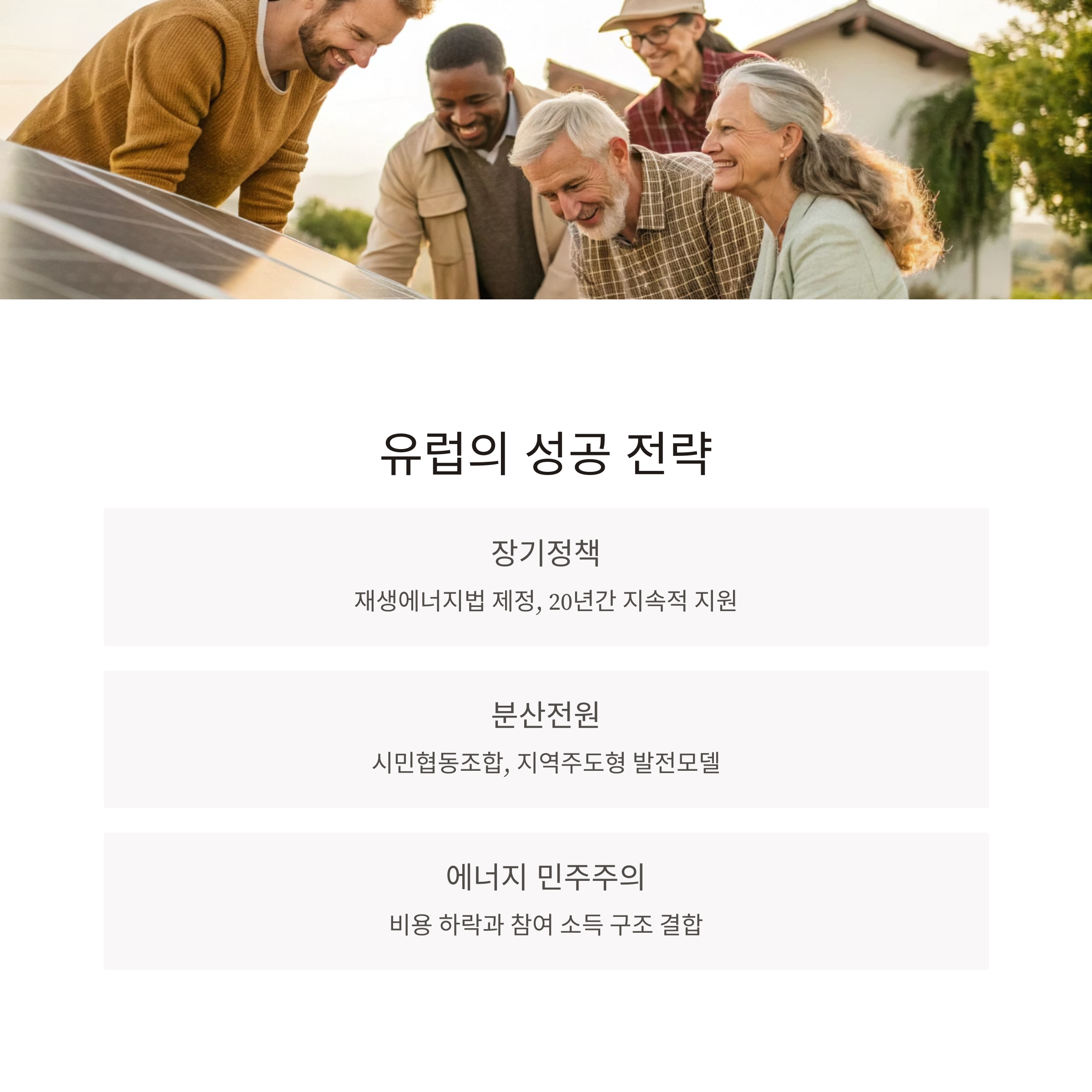 | 에너지 민주주의 | 에너지 비용 하락 + 참여 소득 구조 결합 |