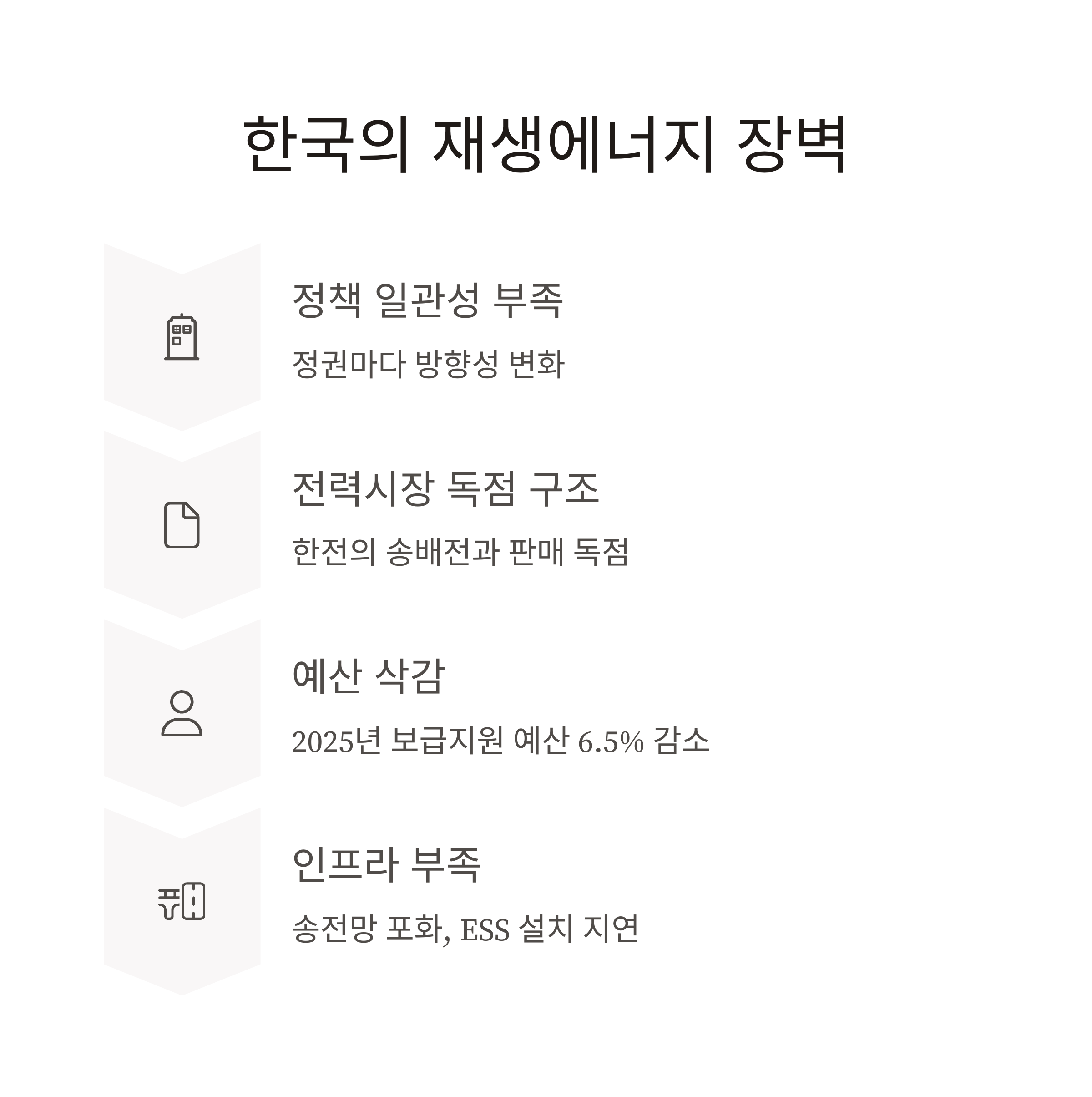 - 송전망 포화, ESS 설치 지연, 인허가 문제 등 구조적 장애물 다수 존재합니다.