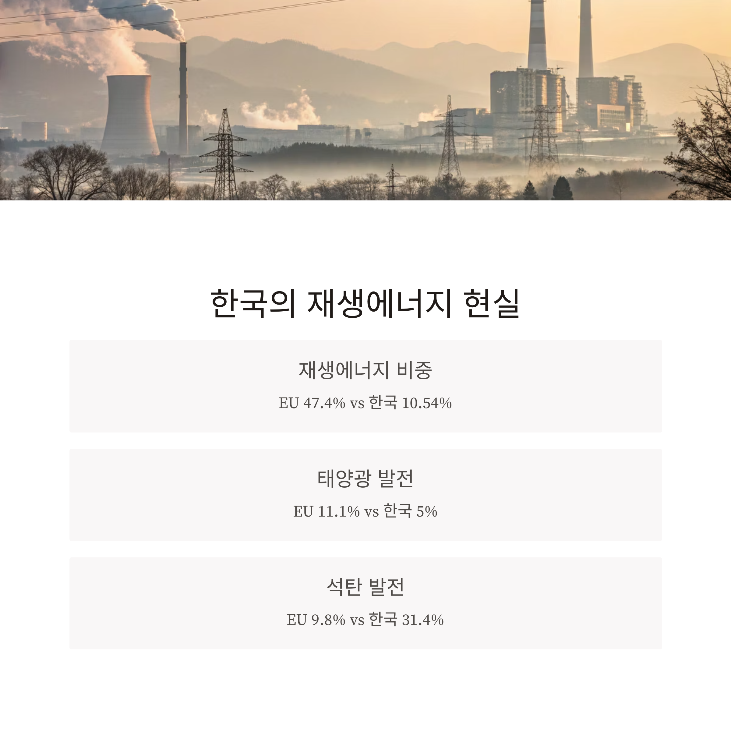 이 수치는 에너지 체계가 단순히 '환경 정책'을 넘어 경제·산업 정책임을 명확히 보여줍니다.